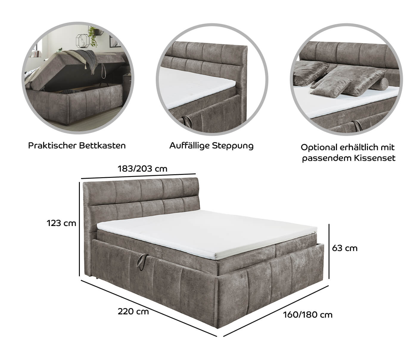 Avidano Boxbett / Polsterbett Doppelbett mit Bettkasten 160x200 - 180x200 cm