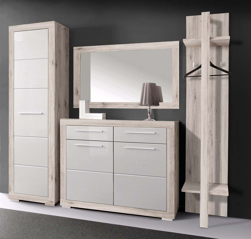 AVIGNON Schuhschrank Sandeiche / Weiß Hochglanz