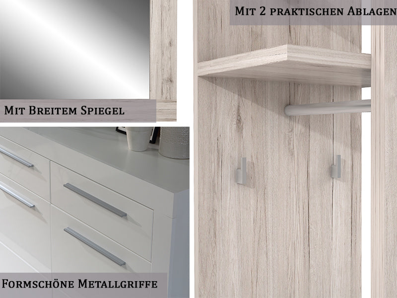 - Garderobenserie bestehend aus: Garderobenschrank, Paneel, Kommode und Spiegel