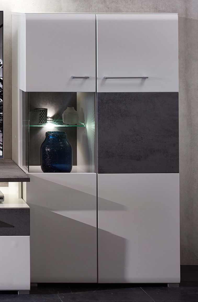 Korpus: Weiß Matt, sichtbare Rückwände Betonoxid dunkel