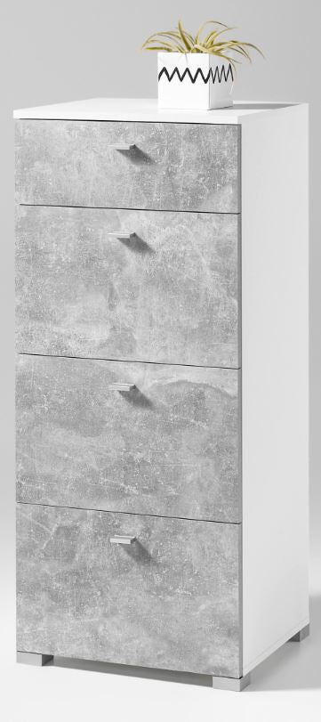 - Kommode mit 4 Schubkästen und einer zusätzlichen weißen Blende für den obersten Schubkasten