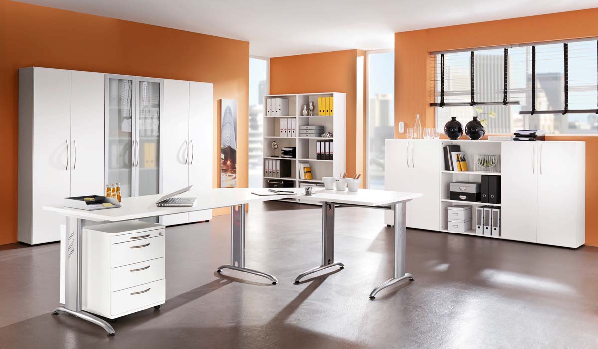 Bangor B-Serie Komplettbüro 13-teilig Weiß / Silber