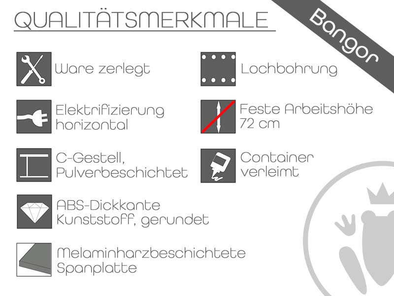 Bangor B-Serie Schreibtisch 180 x 100 cm, manuell höheneinstellbar, Grau