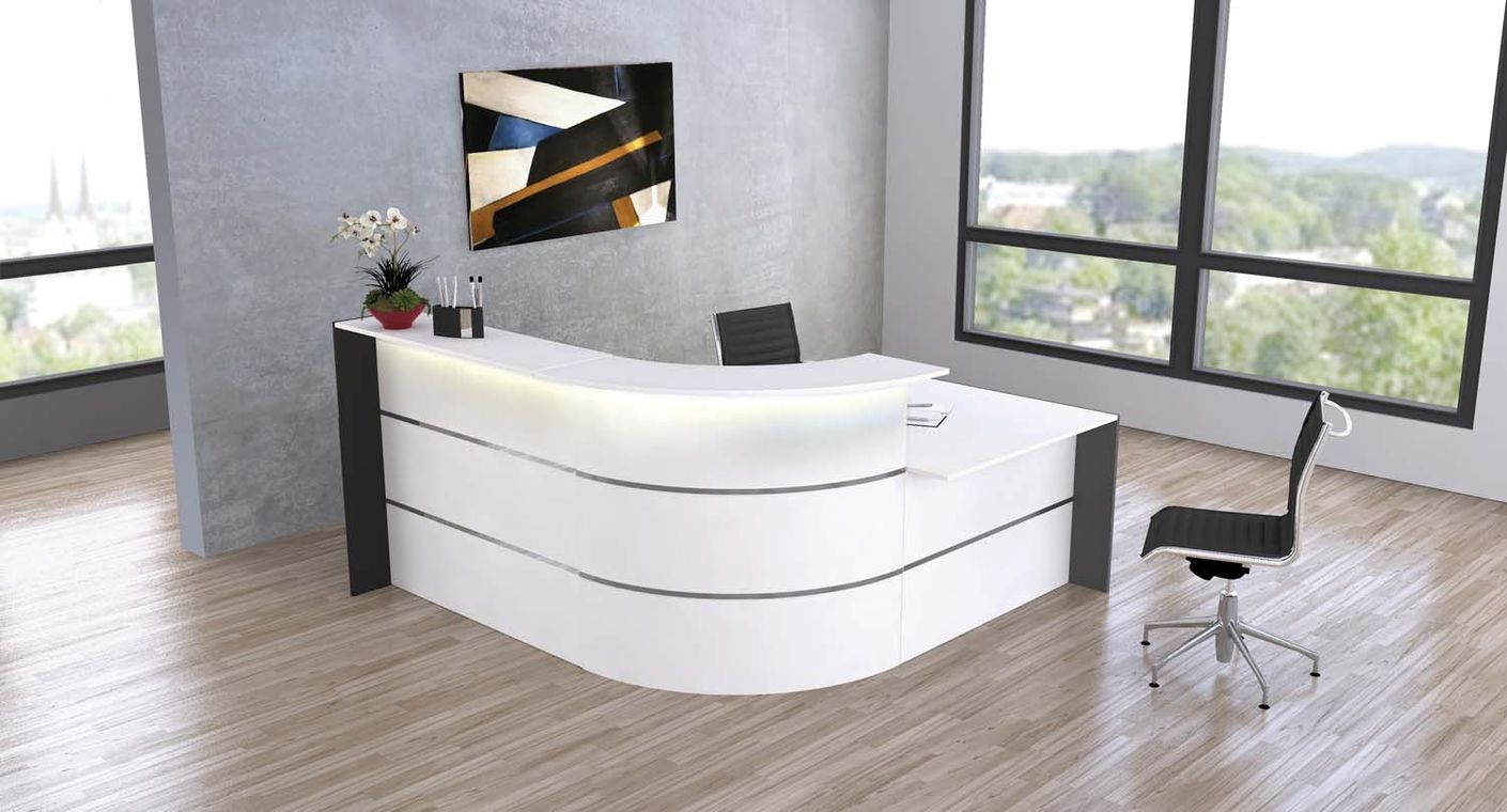 Bari Empfangstheke 235x200 cm gebogen Weiß