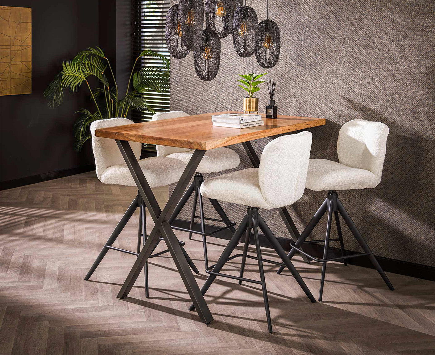 Bartisch 140 cm mit Kreuzfuß Massiv Akazie Natur