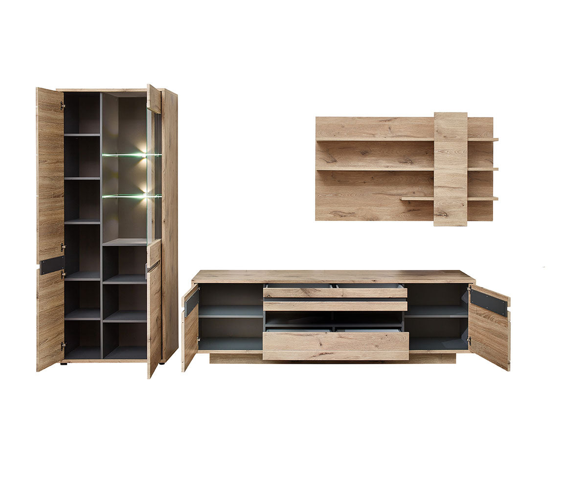 Bellano 3-teilige Wohnwand inkl. LED-Beleuchtung Viking Eiche Natur