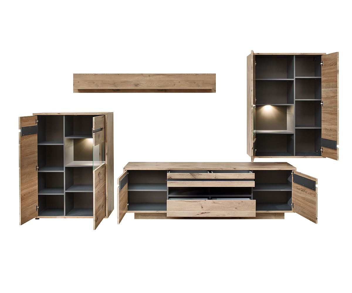 Bellano 4-teilige Wohnwand inkl. LED-Beleuchtung Viking Eiche Natur