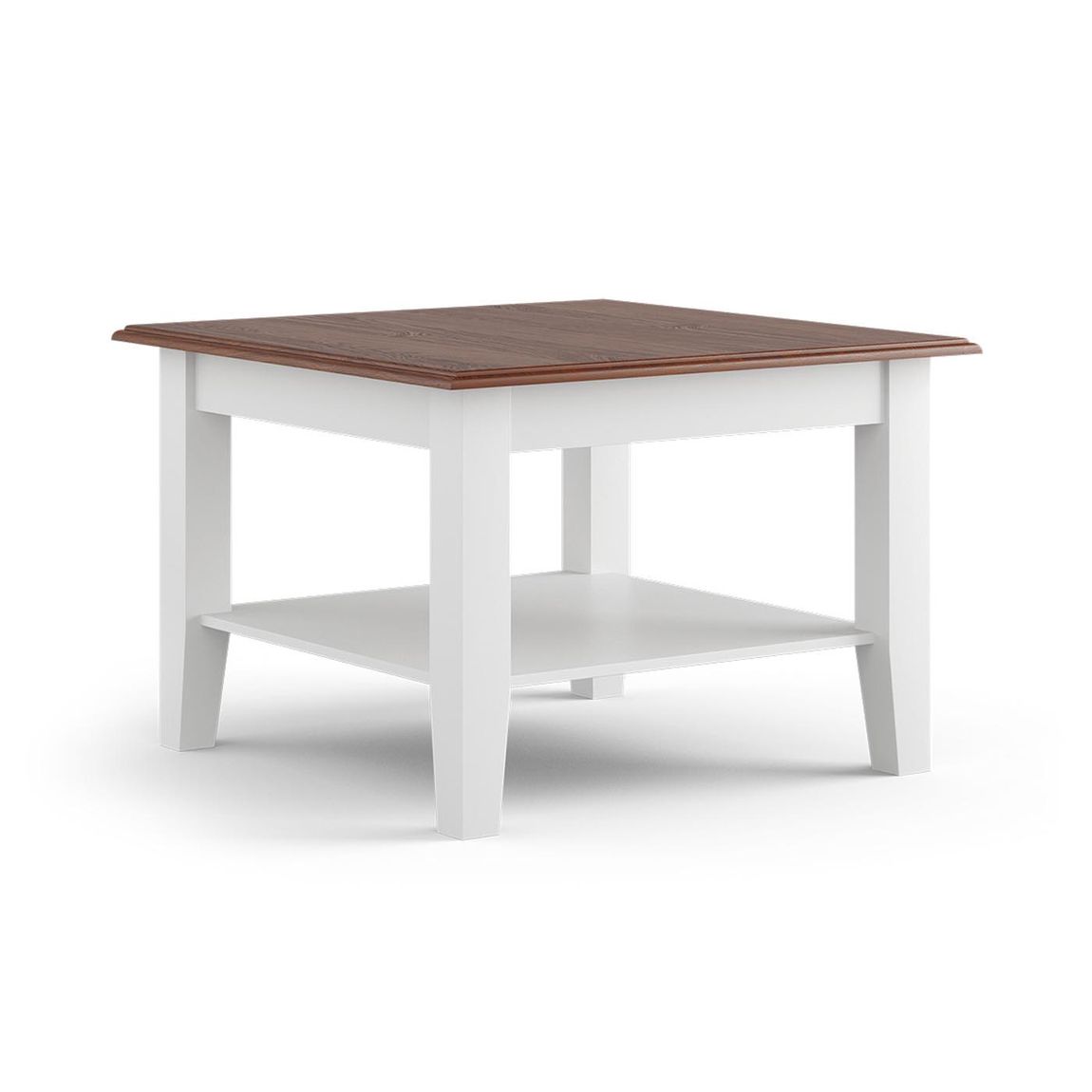 Belluno Elegante Massivholz Couchtisch 70x70 cm Weiß/Walnuss