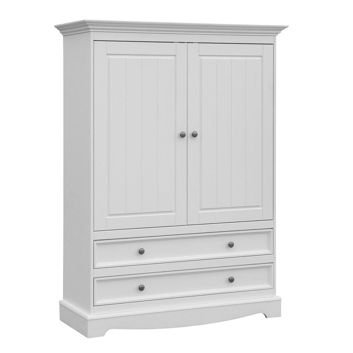 Belluno Elegante Massivholz Kleiderschrank 2-türig mit Schubladen Weiß