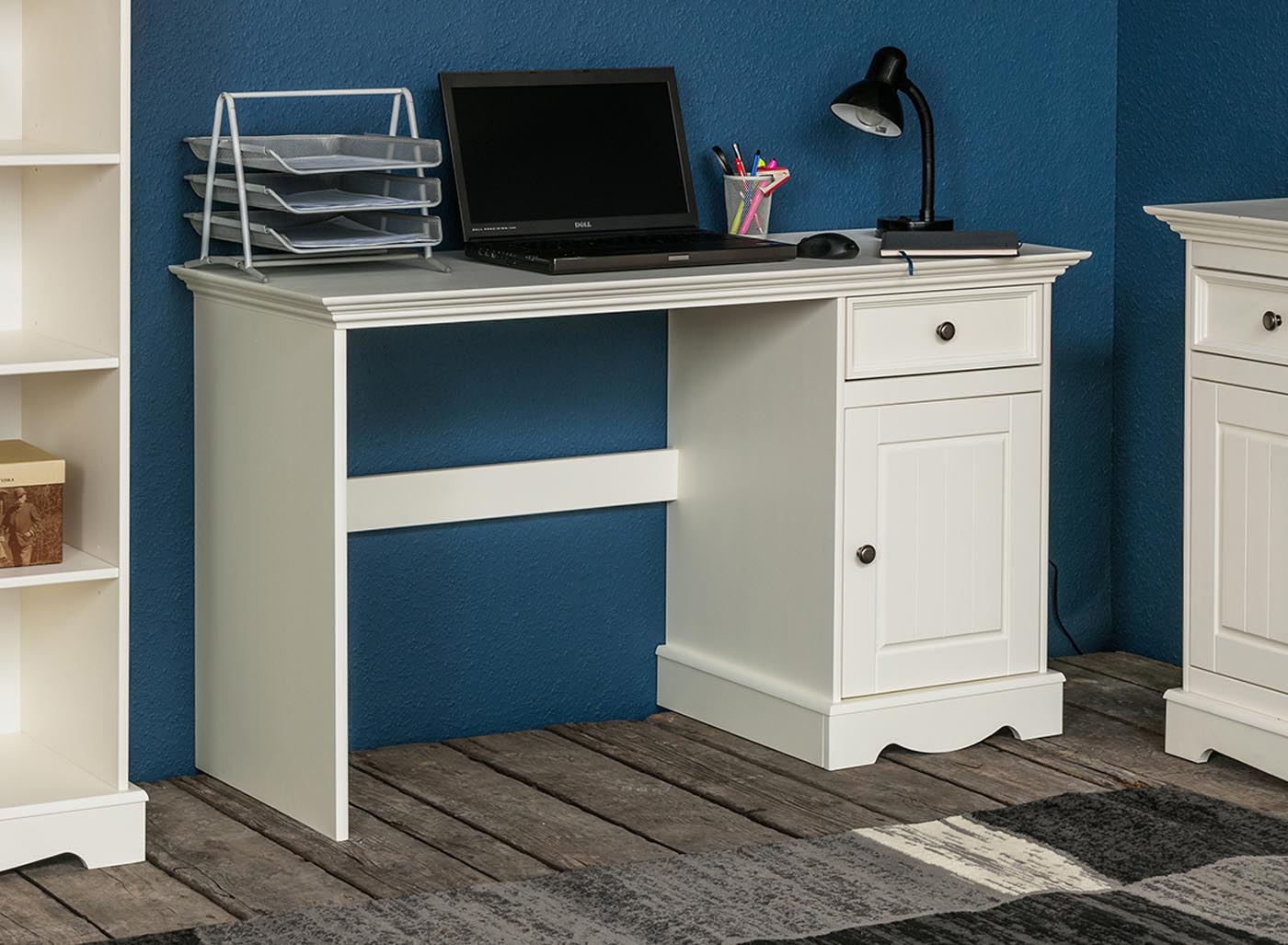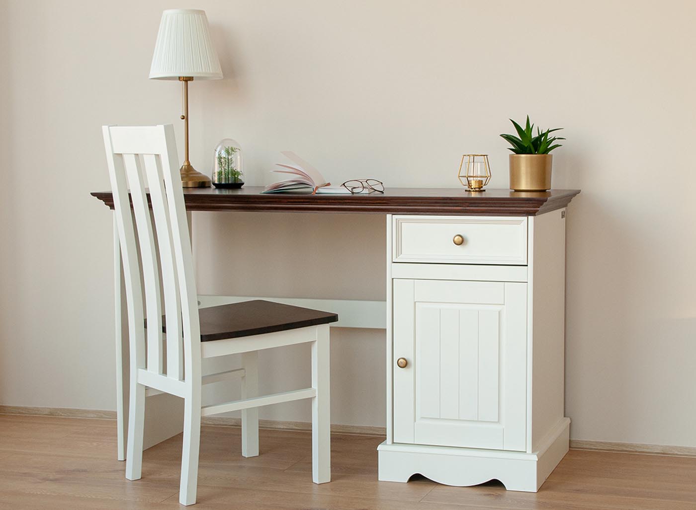 Belluno Elegante Massivholz Schreibtisch 130x53 cm Weiß/Walnuss