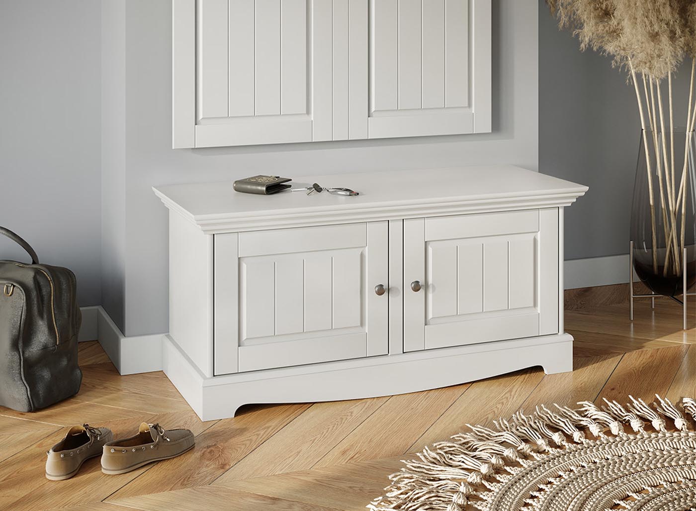 Belluno Elegante Massivholz Schuhschrank, Schuhbank Weiß