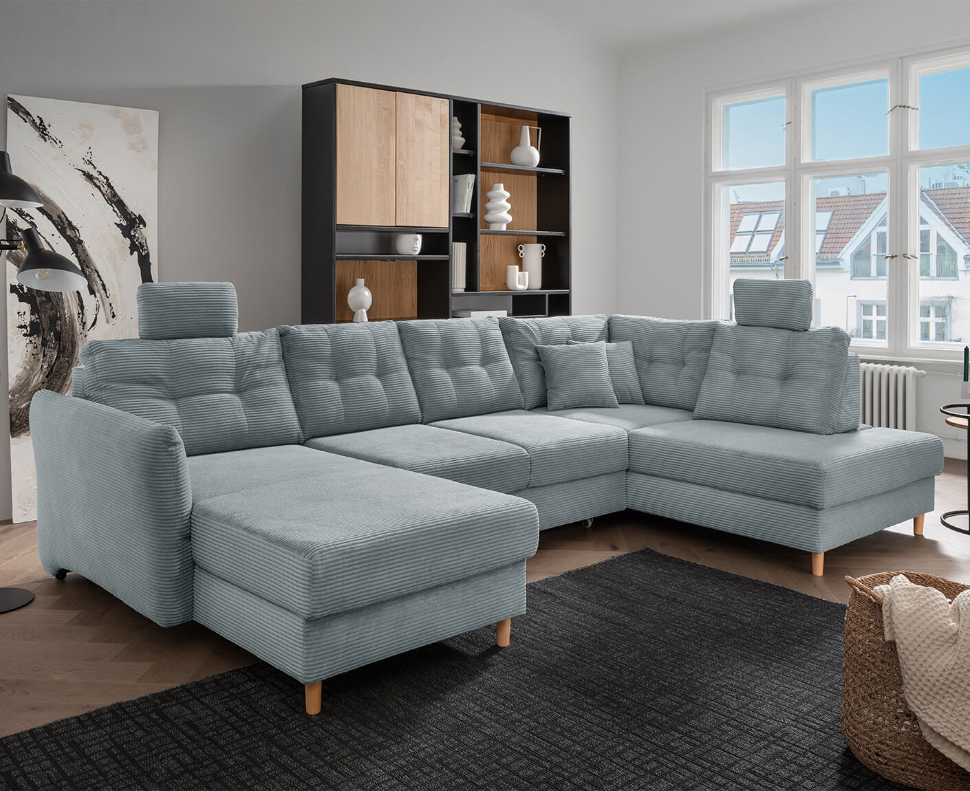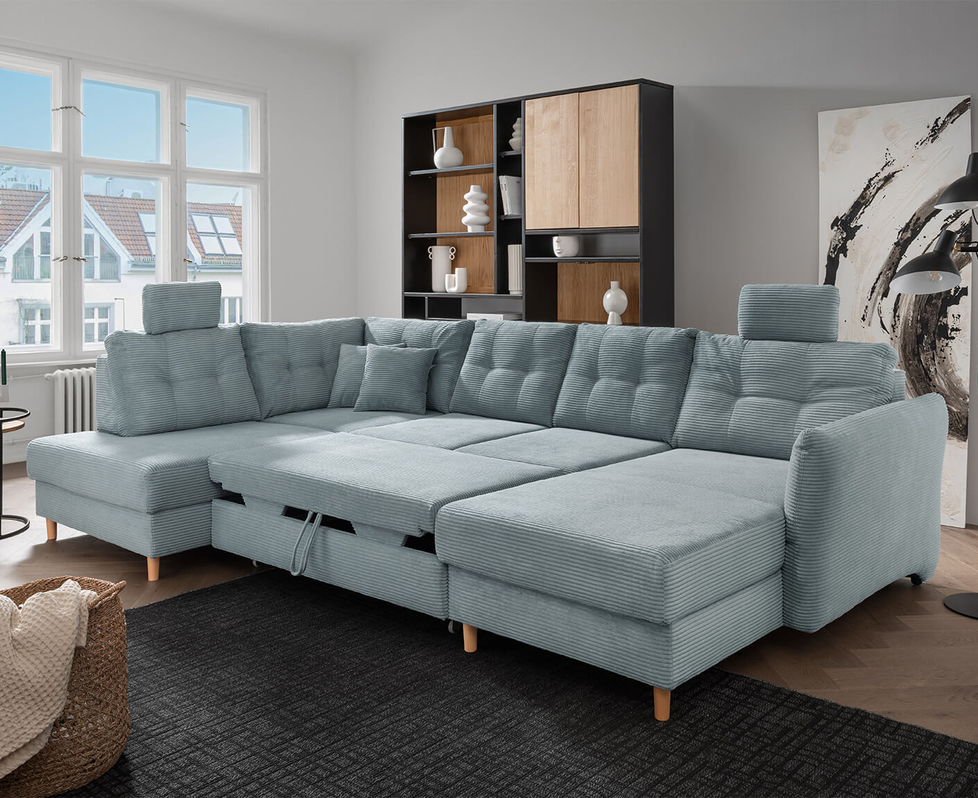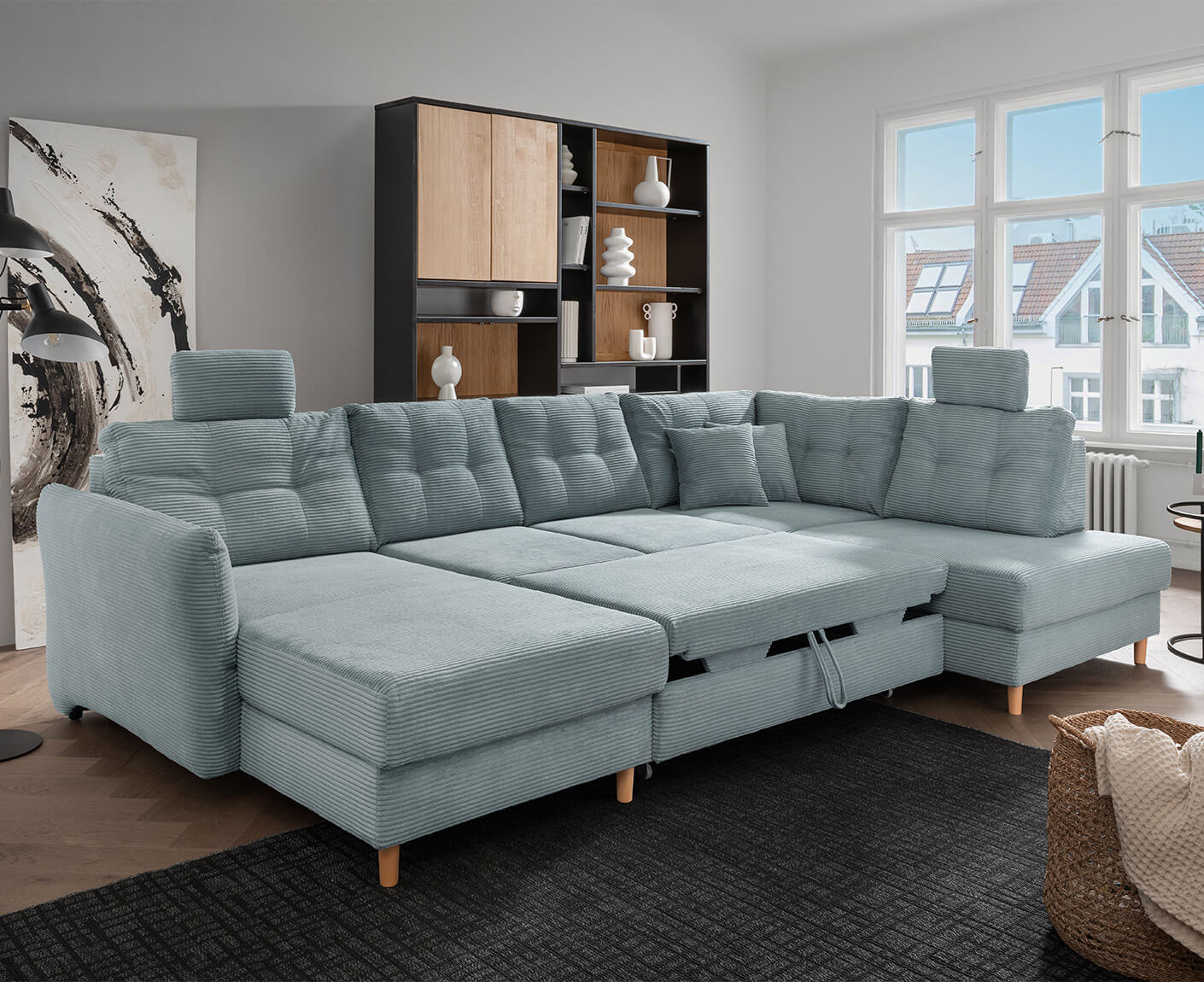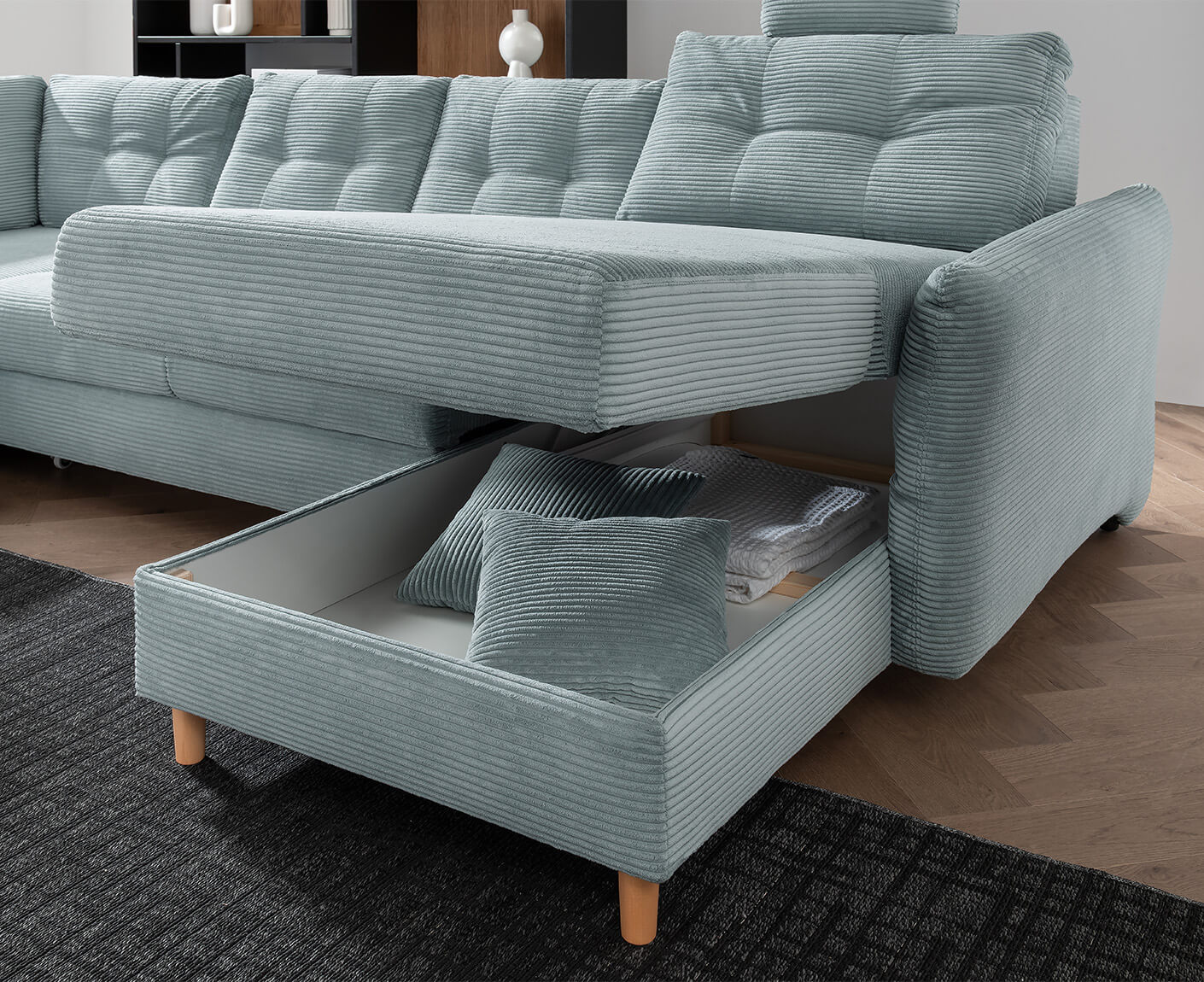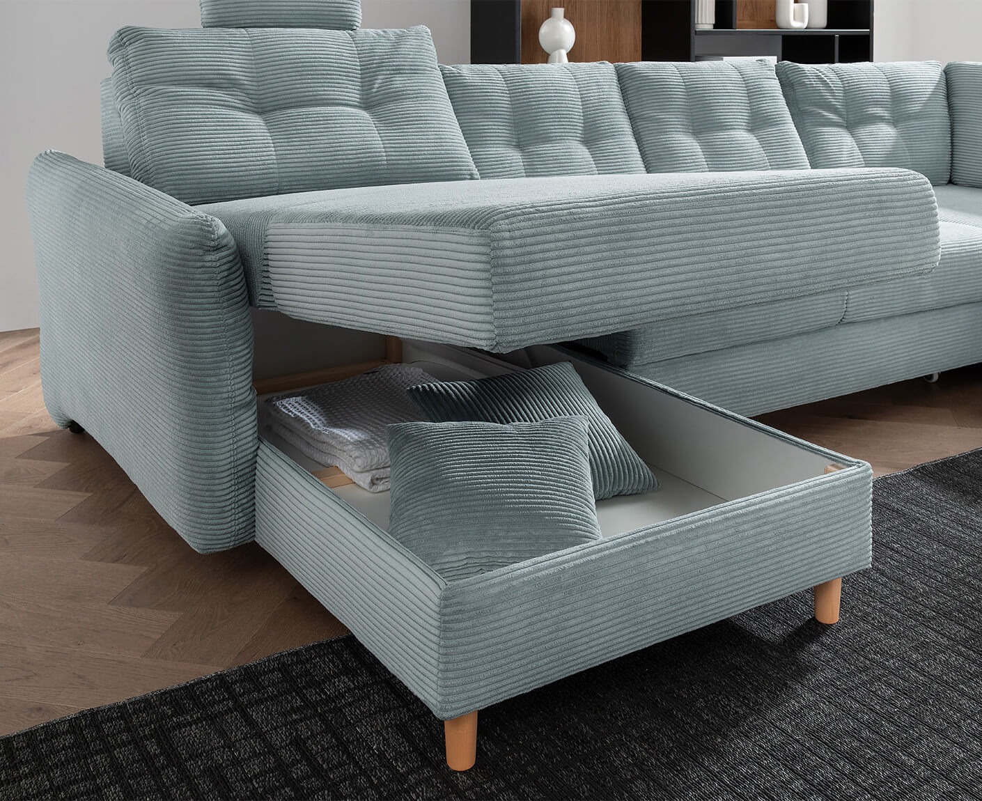 Bergamo Wohnlandschaft 206 x 176 x 338-352cm, mit Schlaffunktion und Bettkasten, Cord