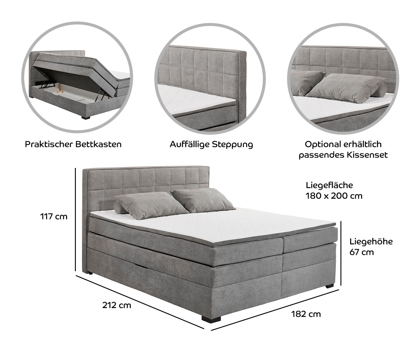 - Dekorative Steppung im Kopfteil