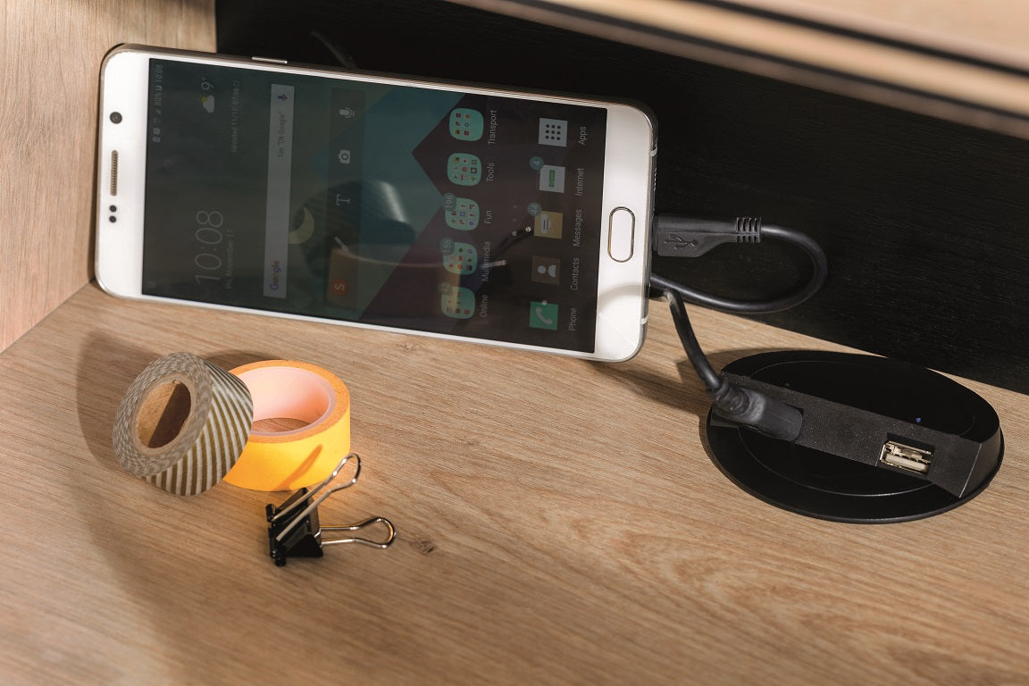 Das Bett ist ebenfalls mit einem USB-Ladegerät ausgestattet, hierbei können Sie ebenfalls z.B. Smartphones oder Tablets aufladen