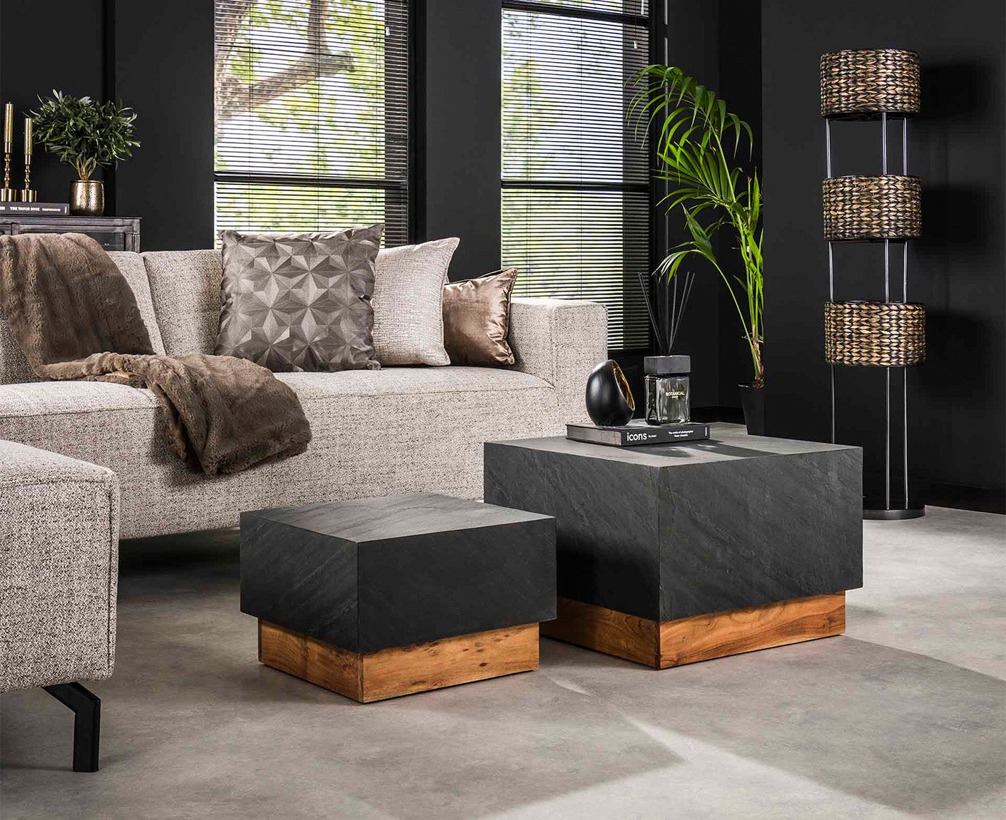 Blox Slate Couchtisch 2er Set Schier / Akazienholz Massiv