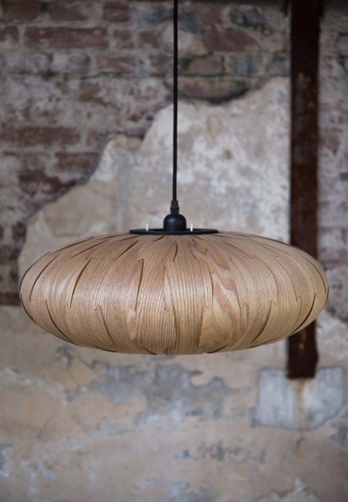 - Eschenholz furniert Schatten. Kunststoff ABS schwarz Baldachin. Schwarz texturierte Kabel.