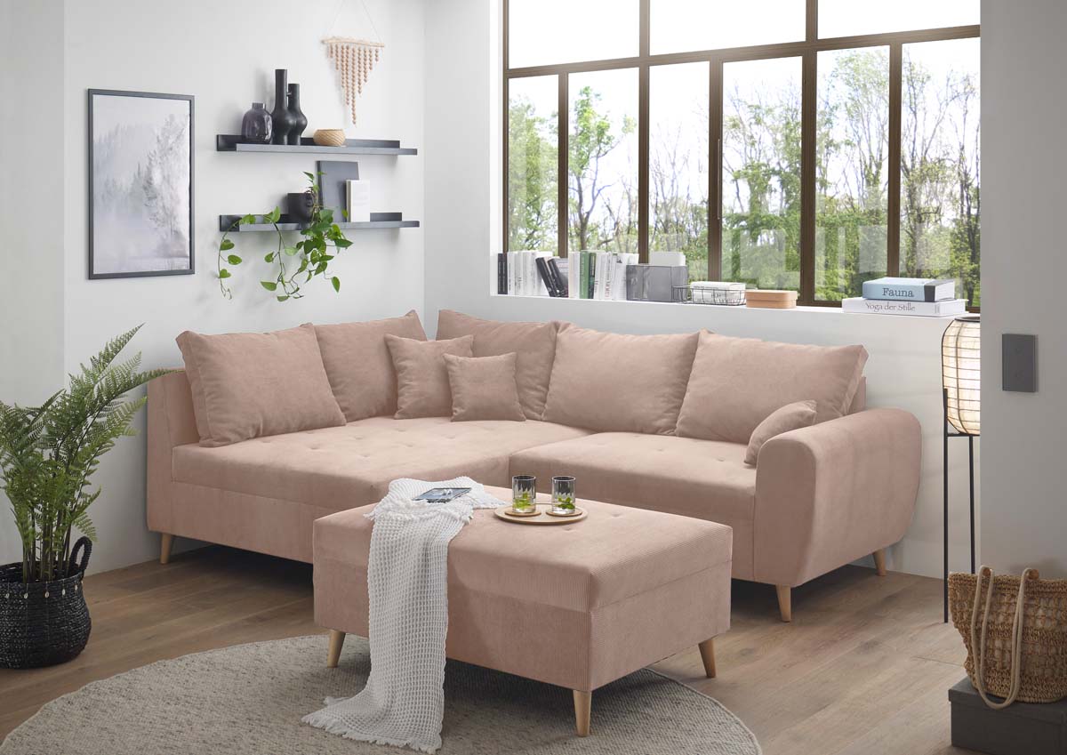 Calanda Ecksofa inkl. Hocker 249 x 175 cm Rosa