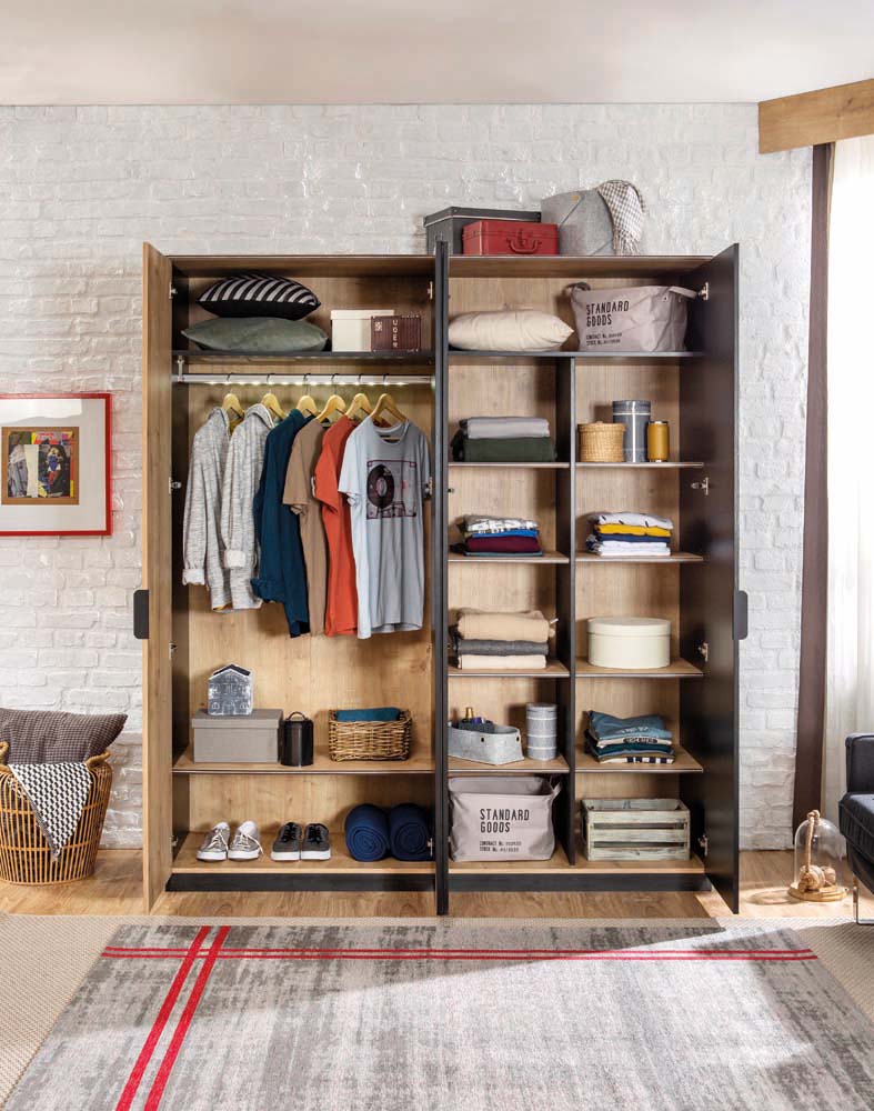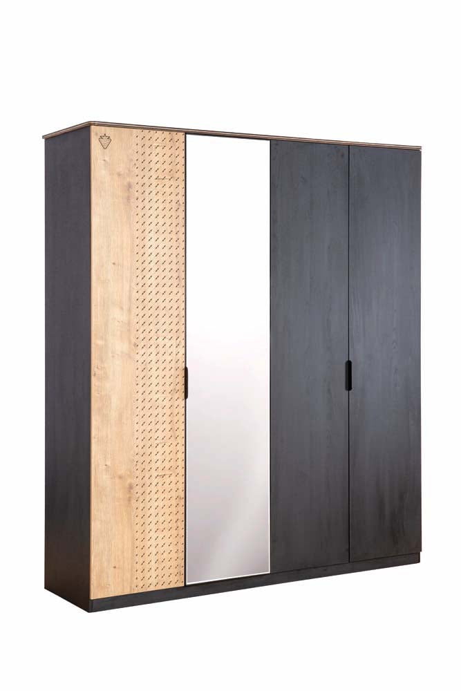 Cilek BLACK Kleiderschrank 4-trg. mit Spiegeltür Schwarz / Beige