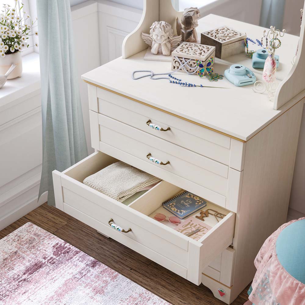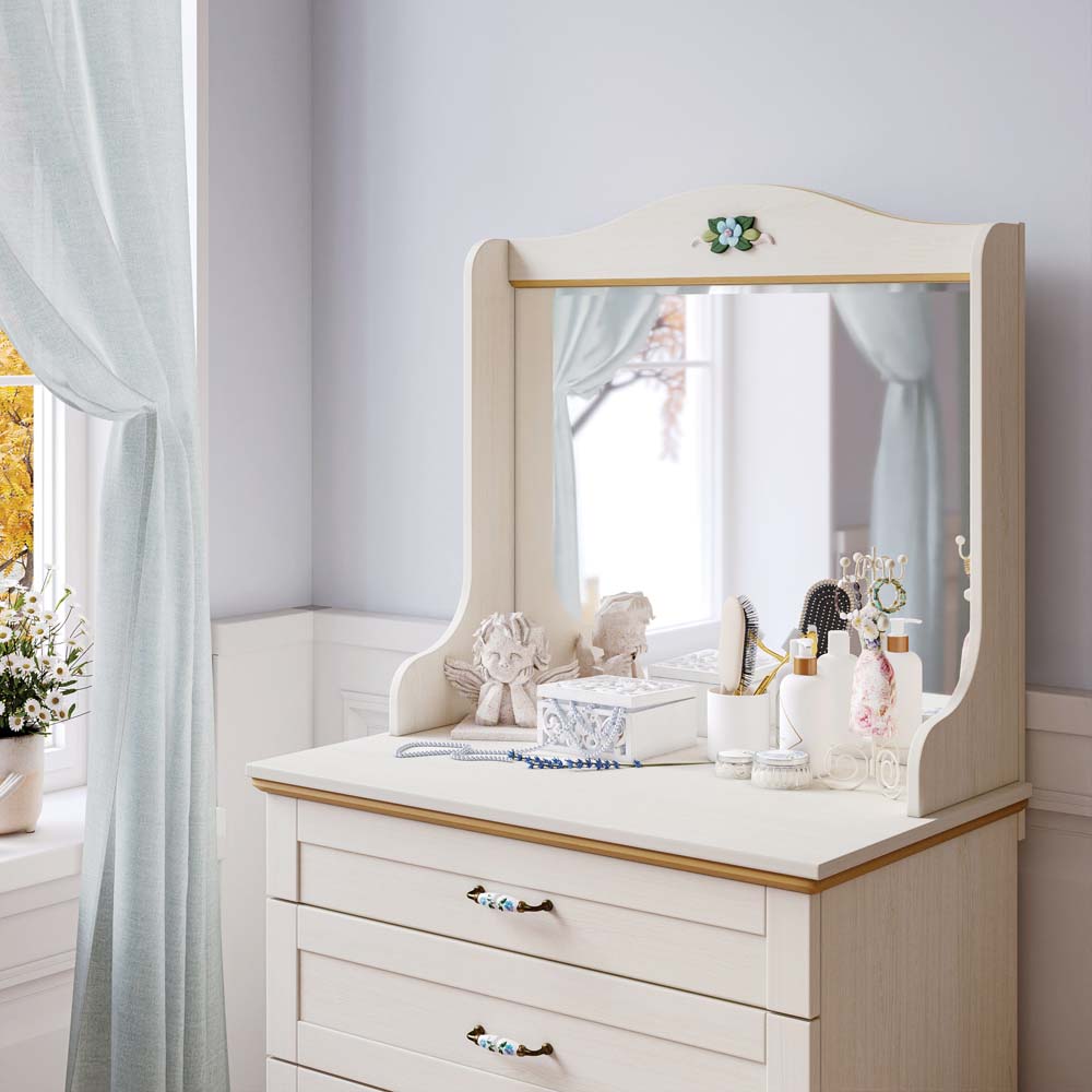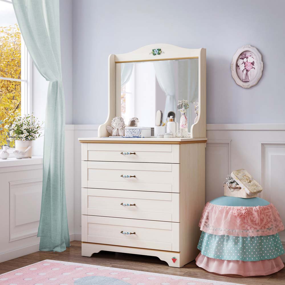 Cilek FLORA Kommode mit Spiegel Anrichte Sideboard Kinderzimmer Birke hell