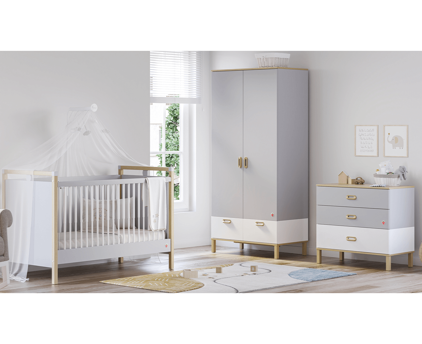 Cilek Mino Baby Babyzimmer Set 4 tlg. inkl. Bettwäsche Grau / Weiß