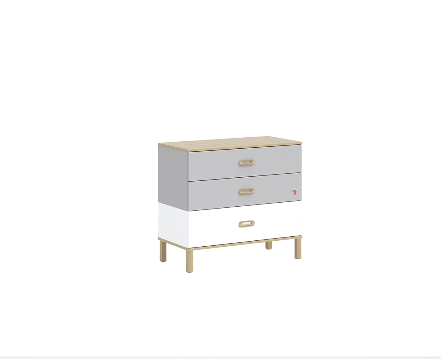 - drei Schubladen, zwei graue und eine weiße