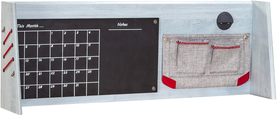mit Leselampe, USB-Anschluss, Ablagefächer aus Stoff und Kreidetatafel mit Monatsübersicht.