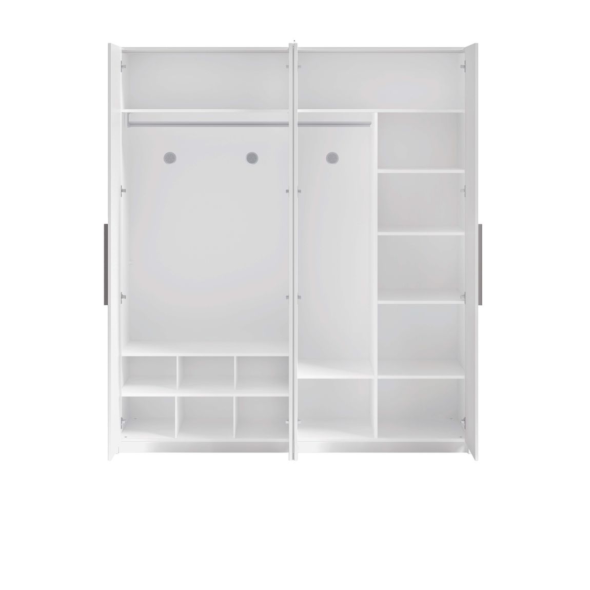 - rechts: 1 Kleiderstange, 7 Fachböden