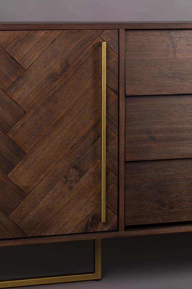Vierkantrohrbeine und Türgriffe aus Stahl mit antiker Messingbeschichtung