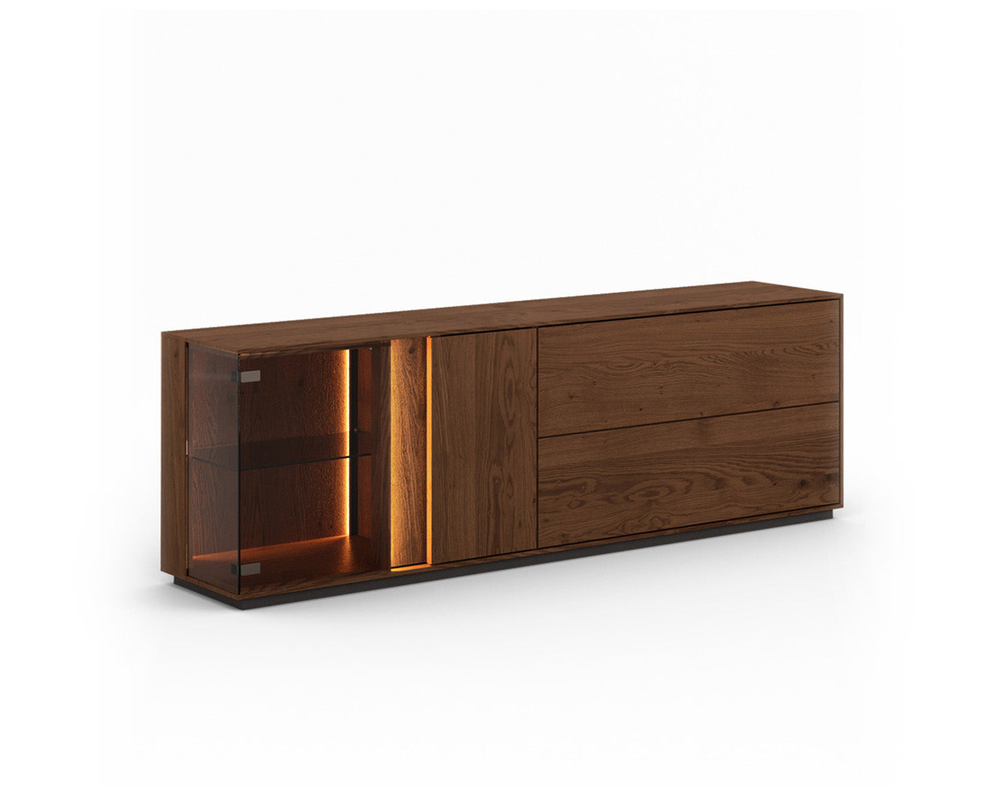 - Front: Wildeiche Tabak, massiv geölt & getöntes Glas