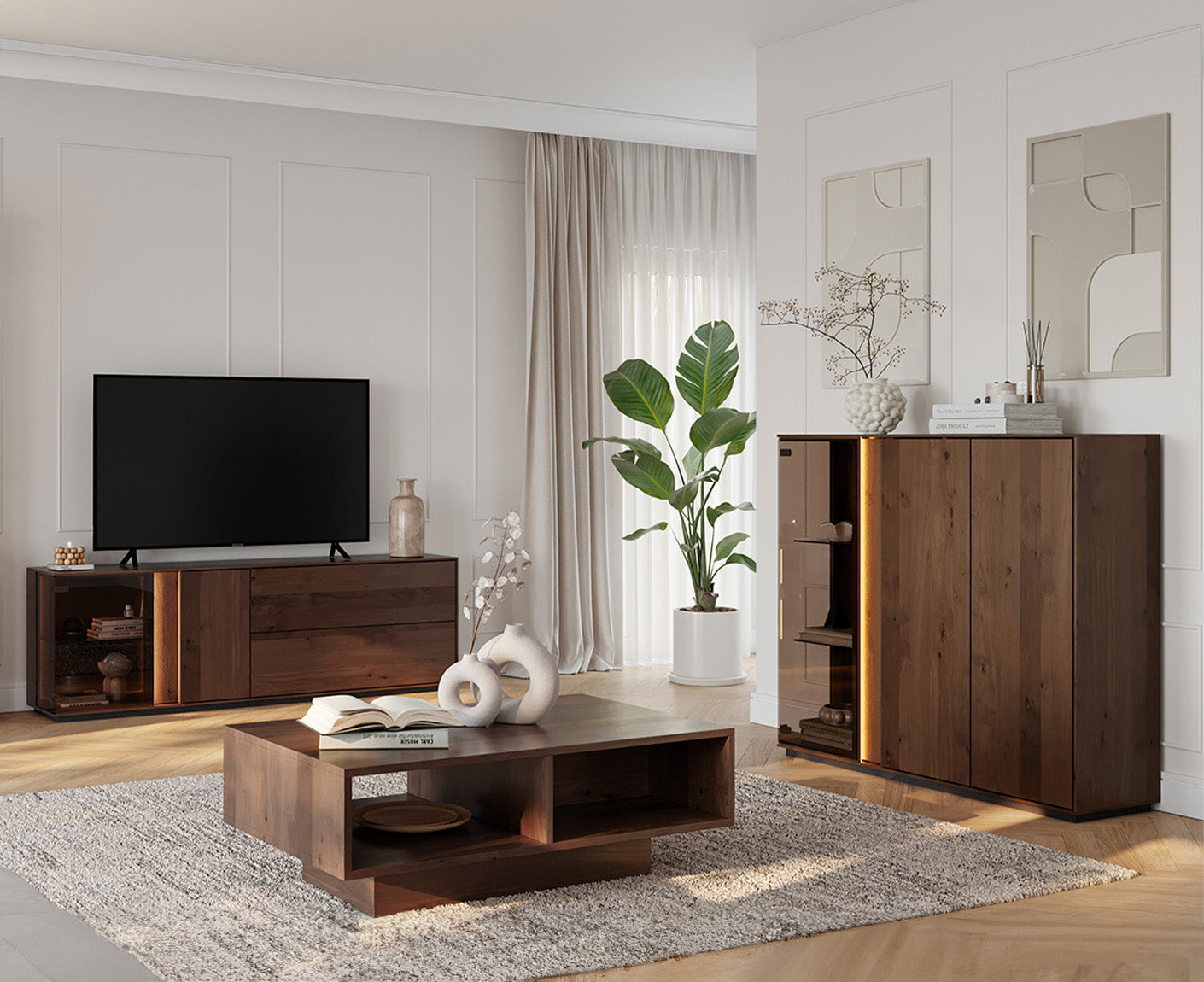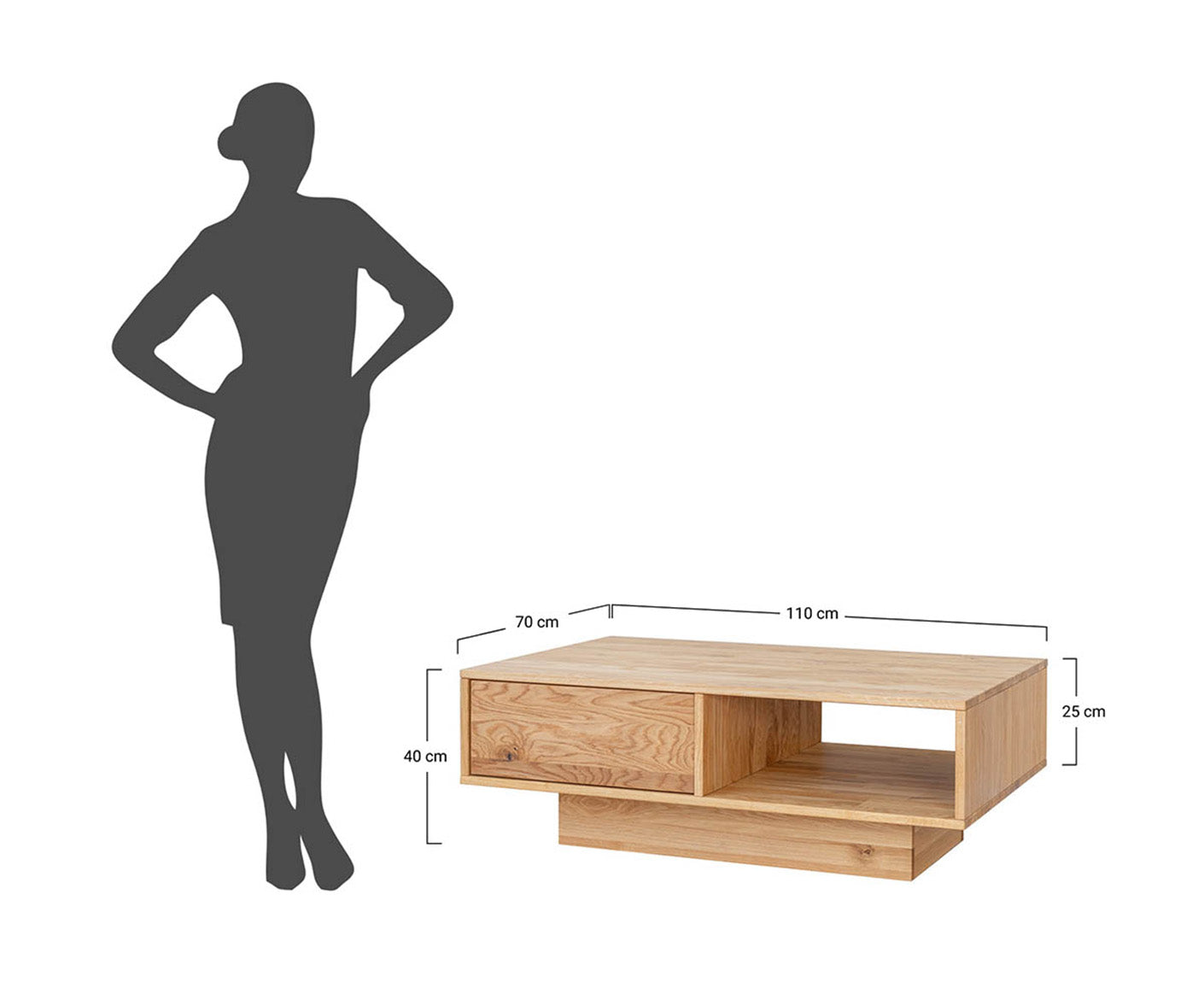 Collodi Couchtisch Massivholz Wildeiche / Tabak geölt, fertig montiert