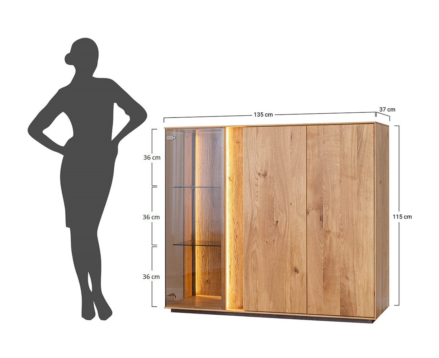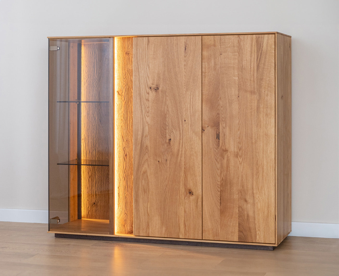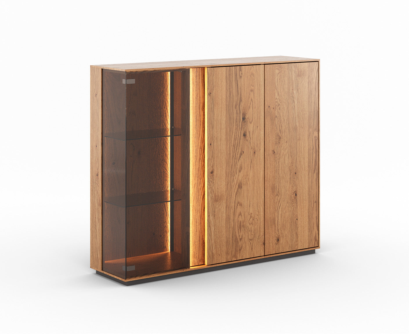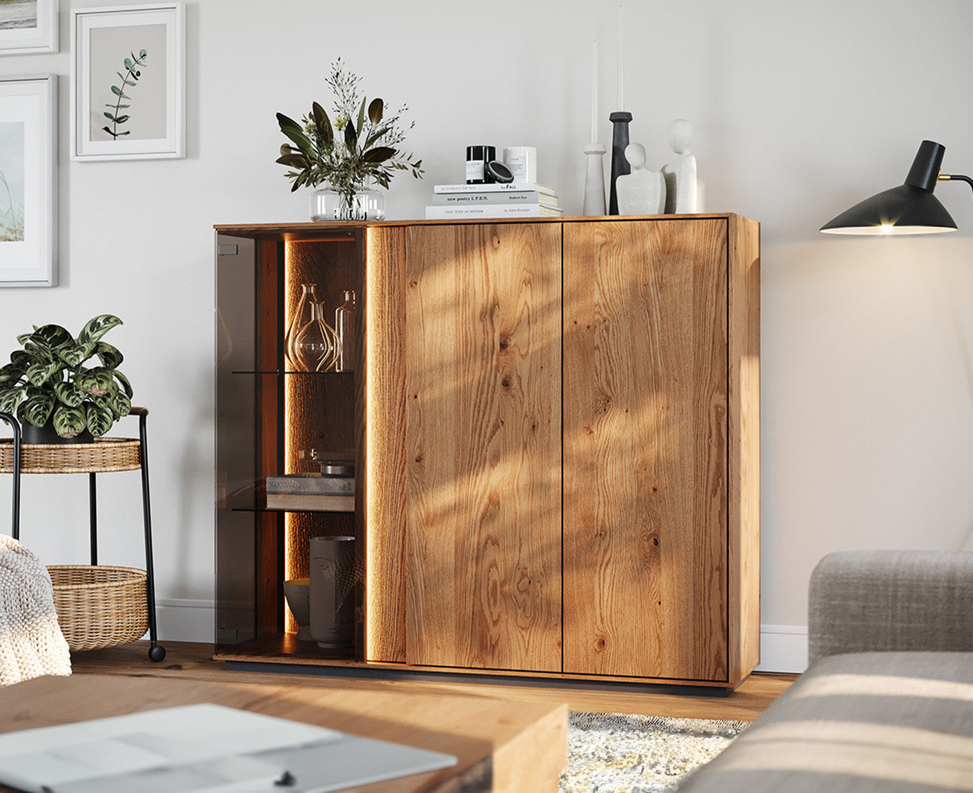 Collodi Sideboard 3-türig Massivholz Wildeiche / Tabak geölt, fertig montiert