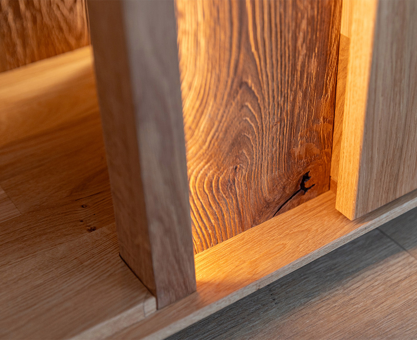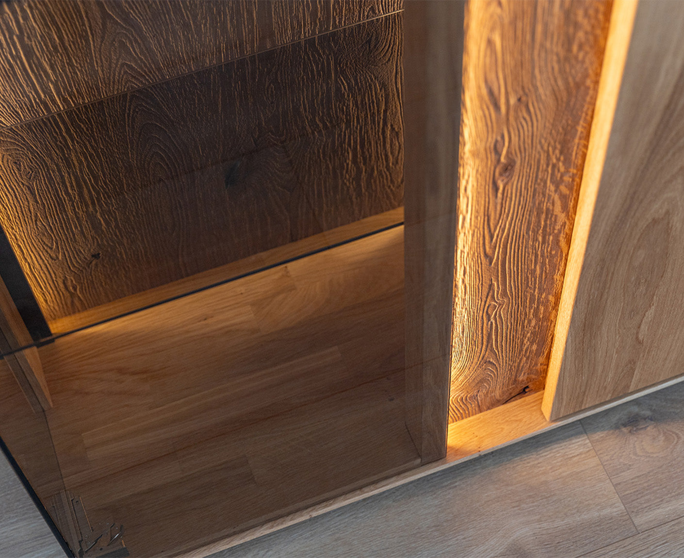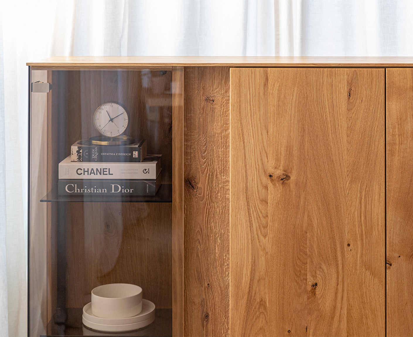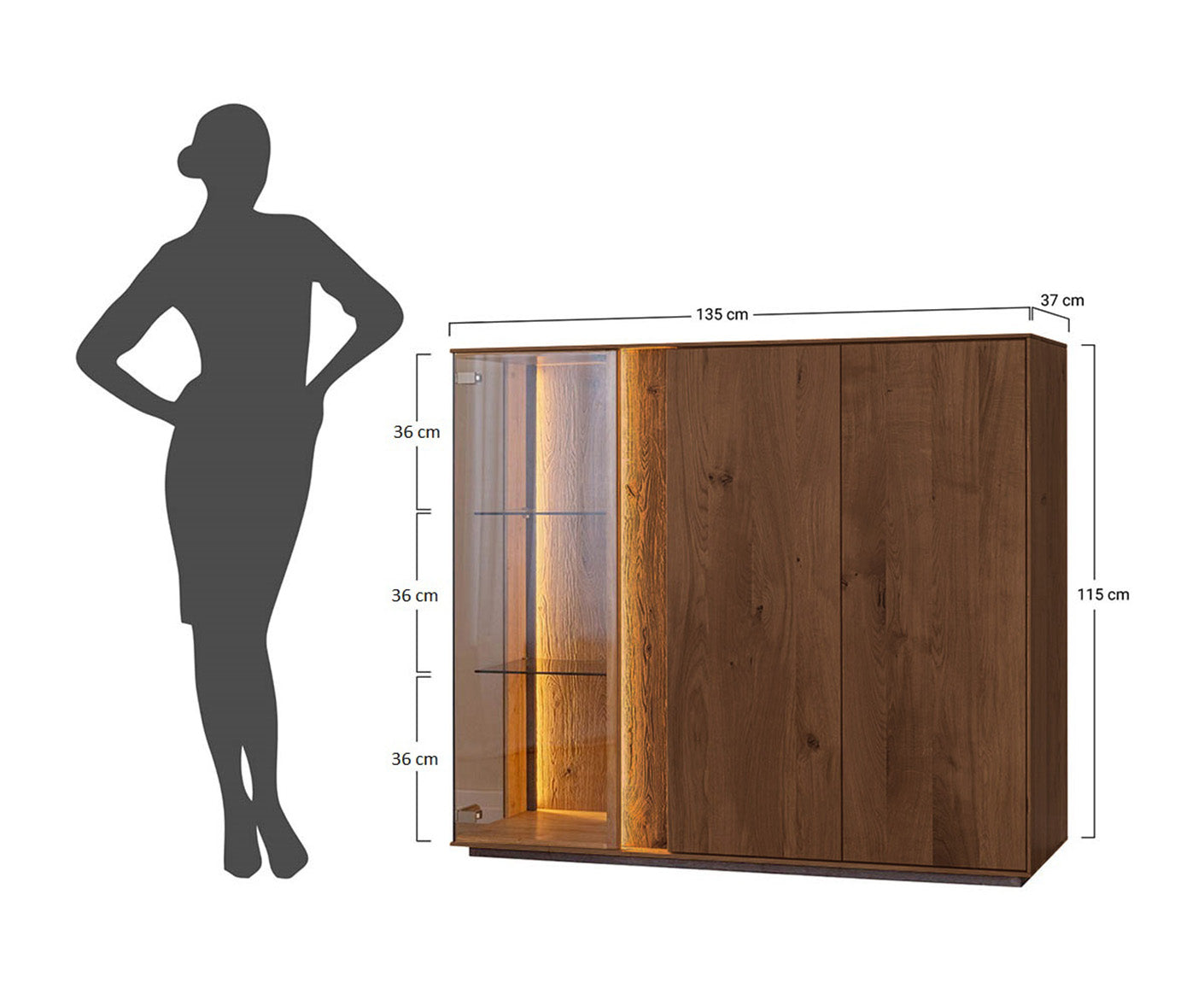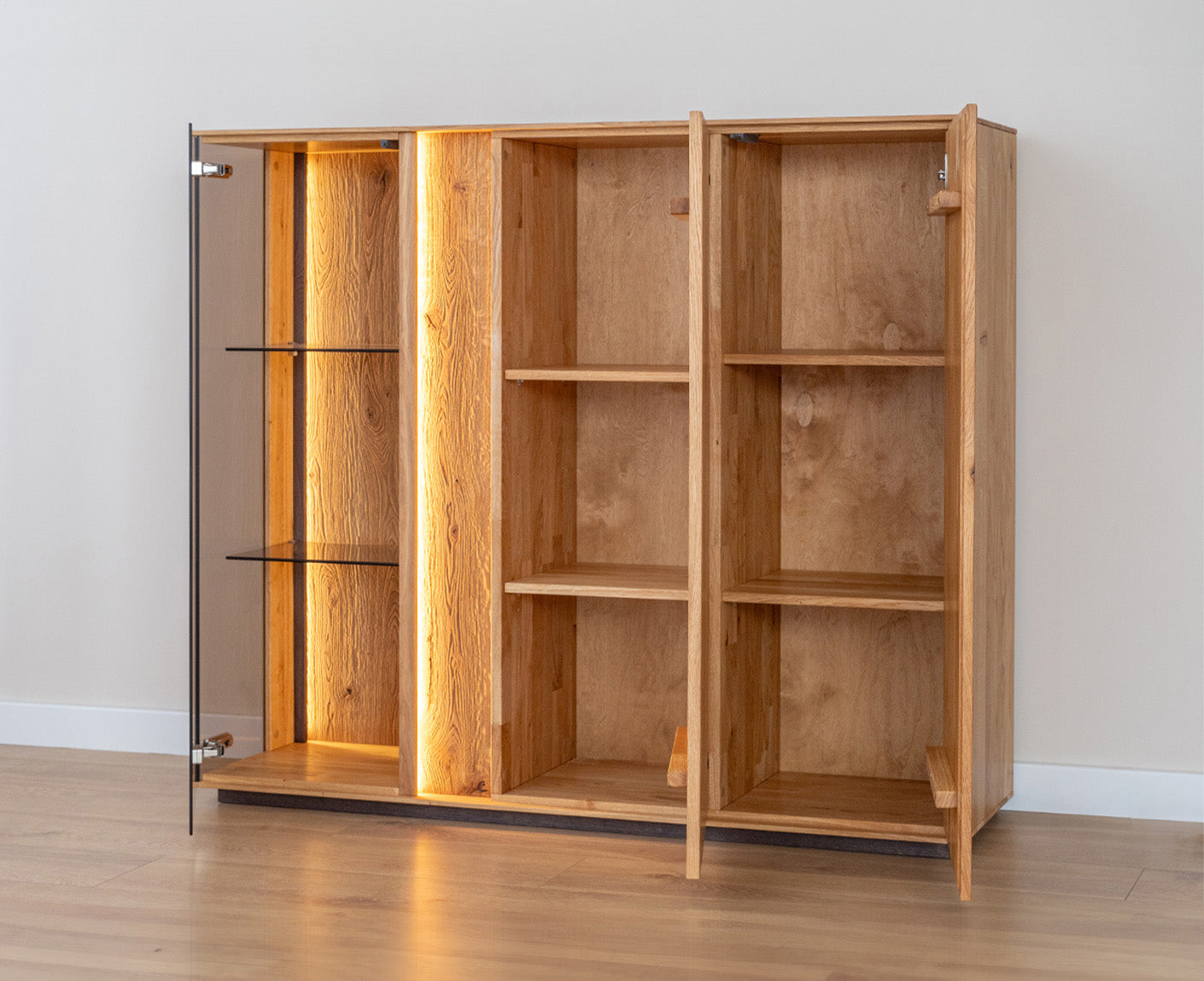 Collodi Sideboard 3-türig Massivholz Wildeiche / Tabak geölt, fertig montiert