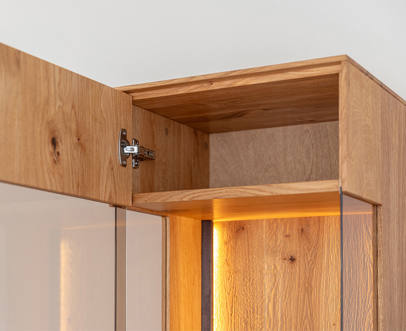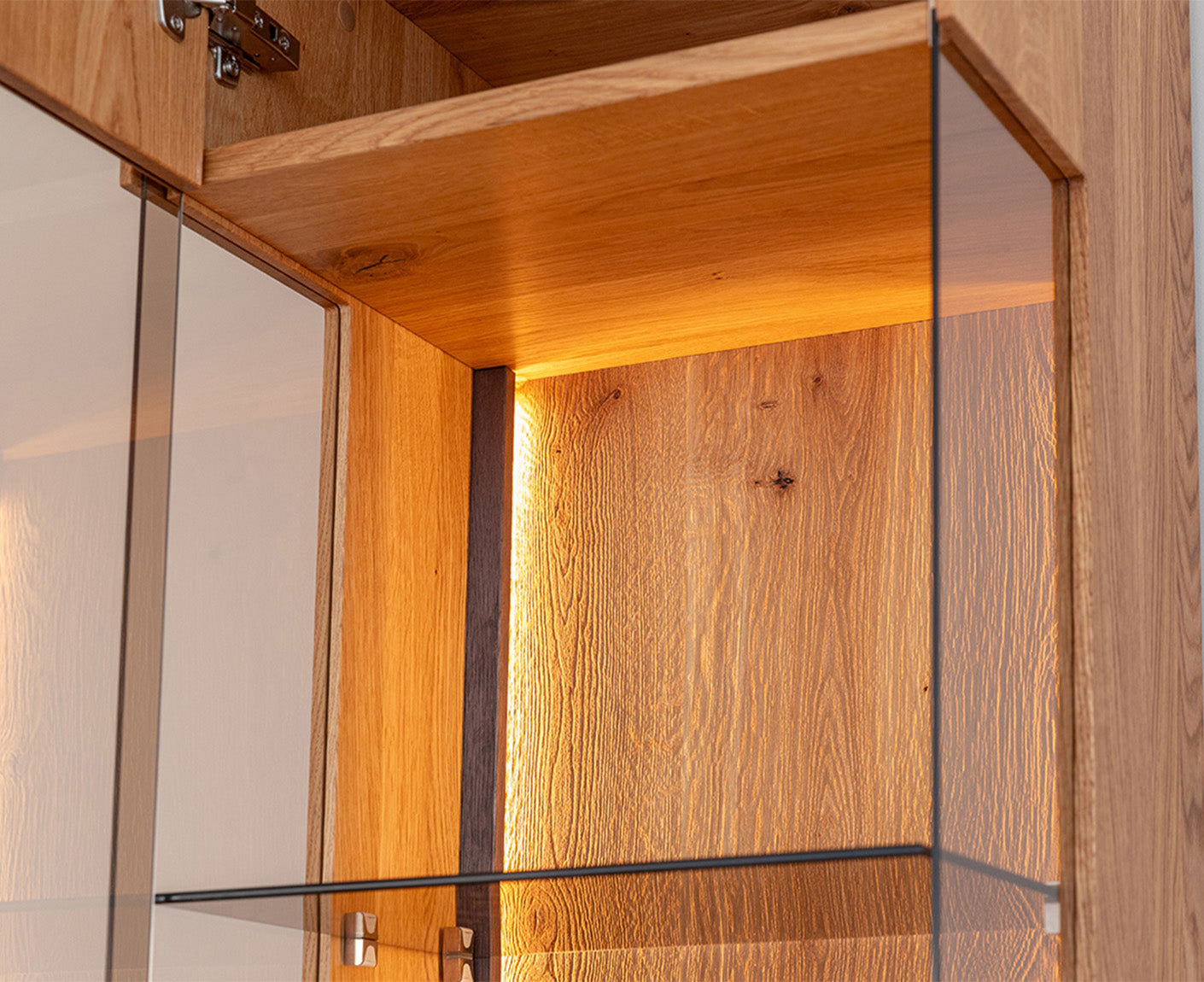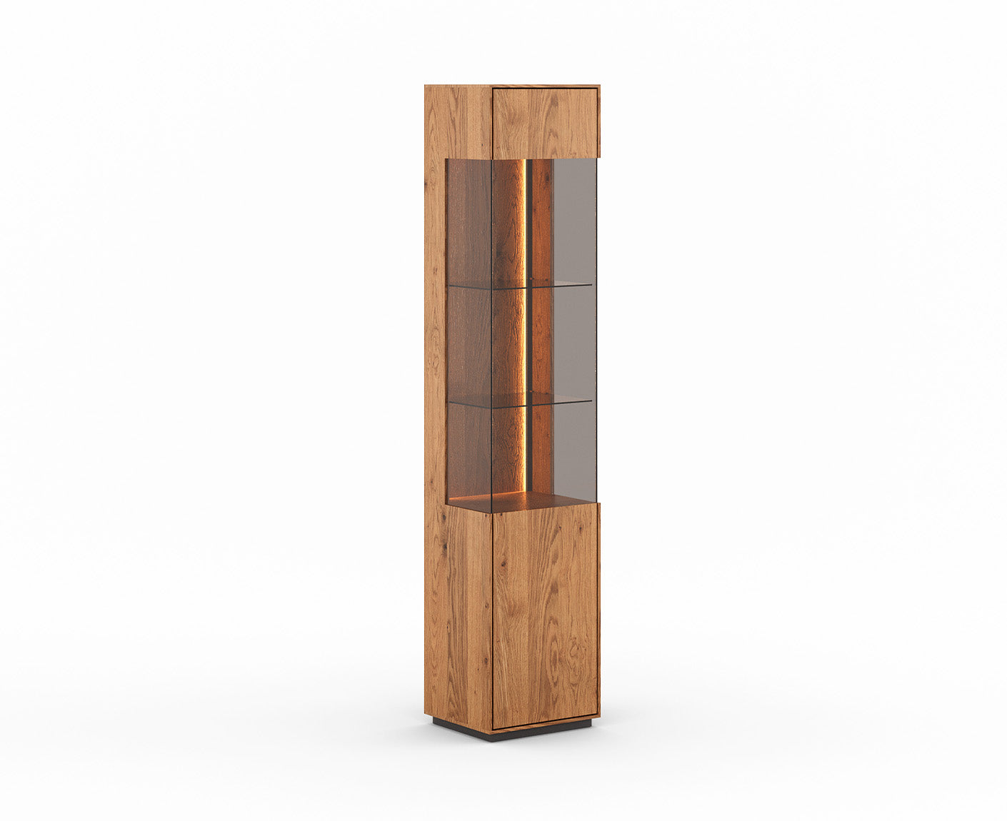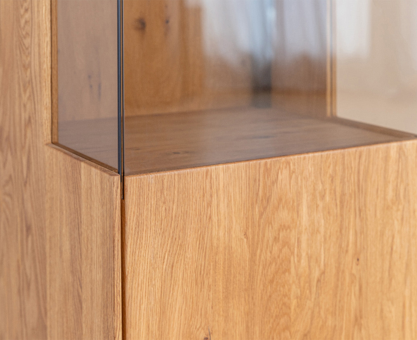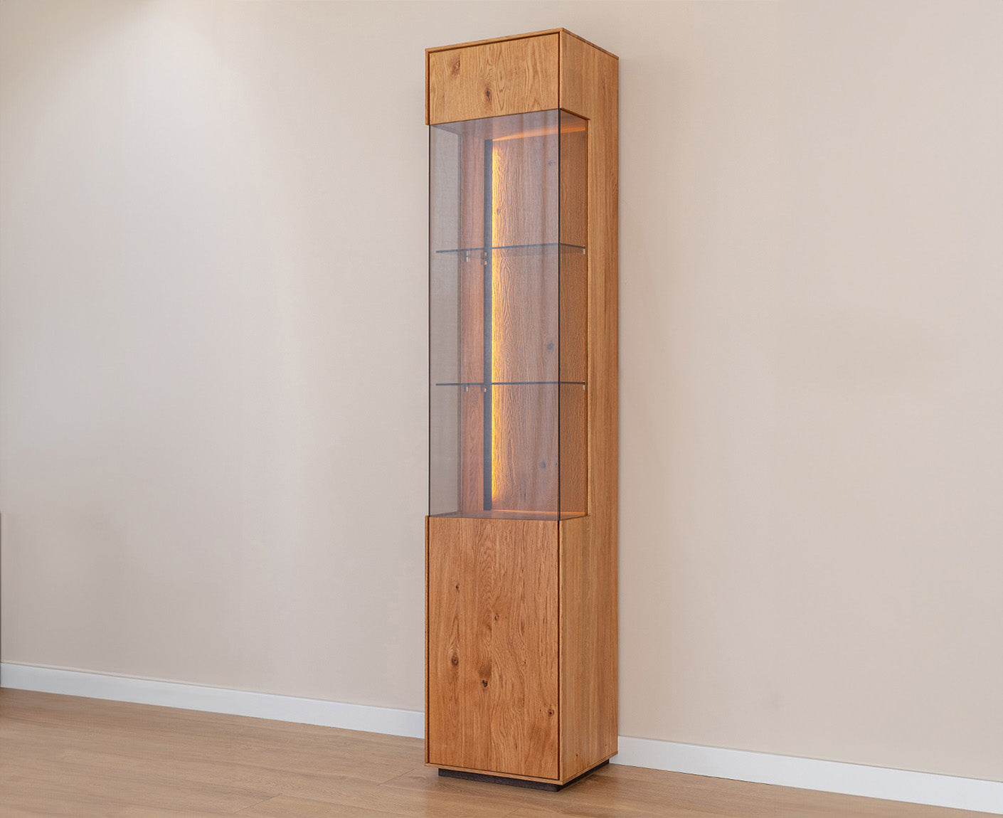 Collodi Vitrine Massivholz Wildeiche / Tabak geölt, fertig montiert