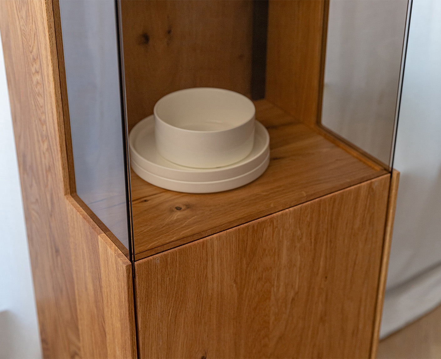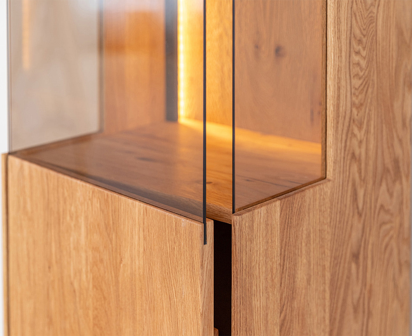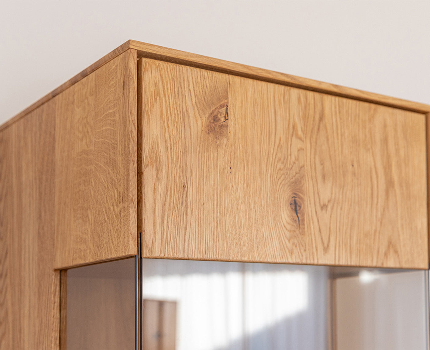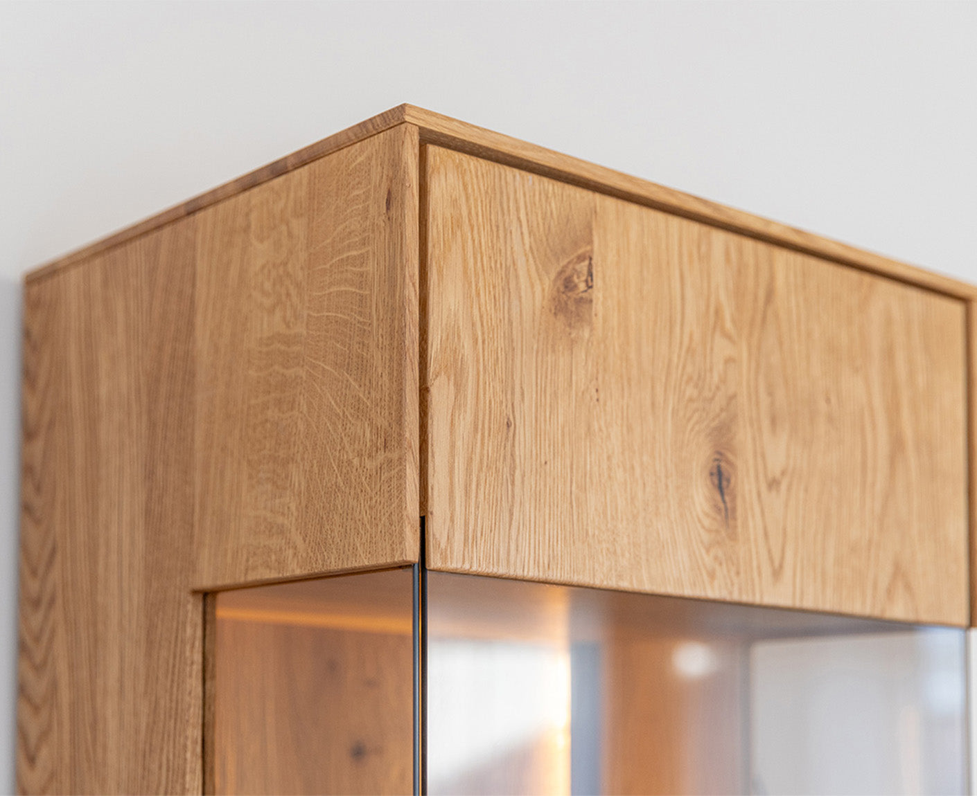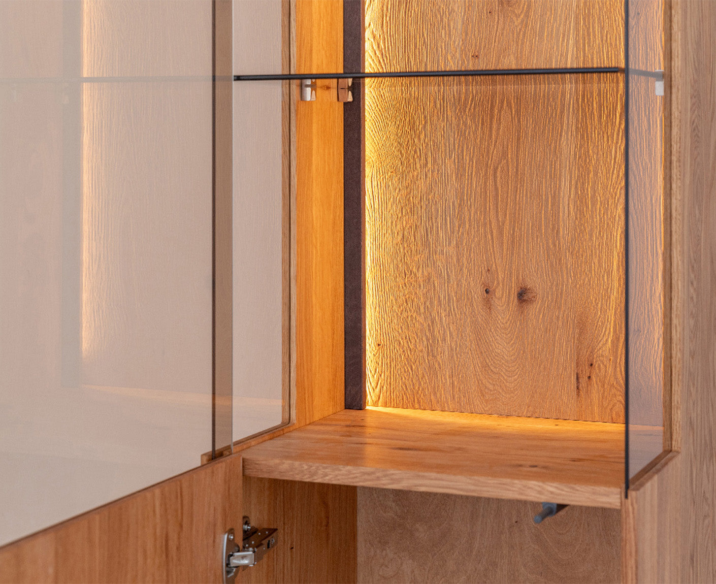 Collodi Vitrine Massivholz Wildeiche / Tabak geölt, fertig montiert