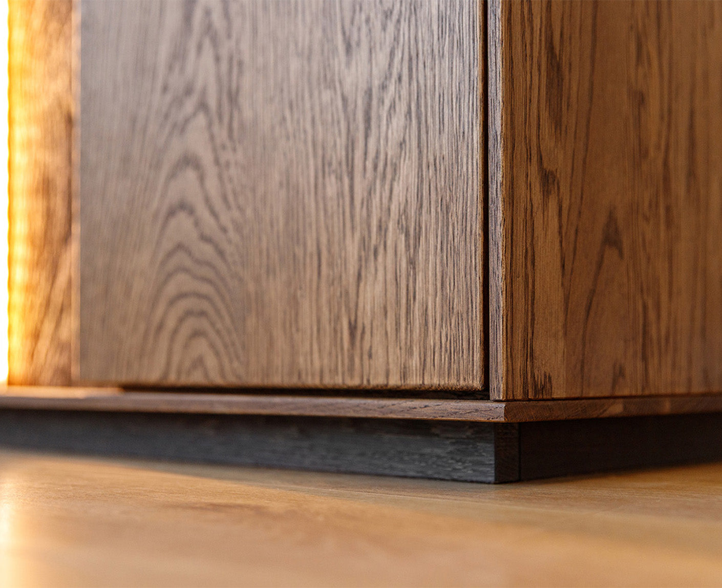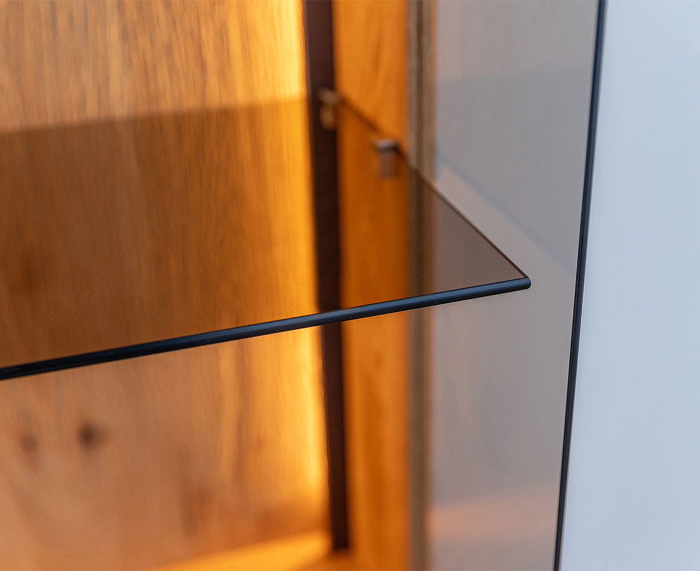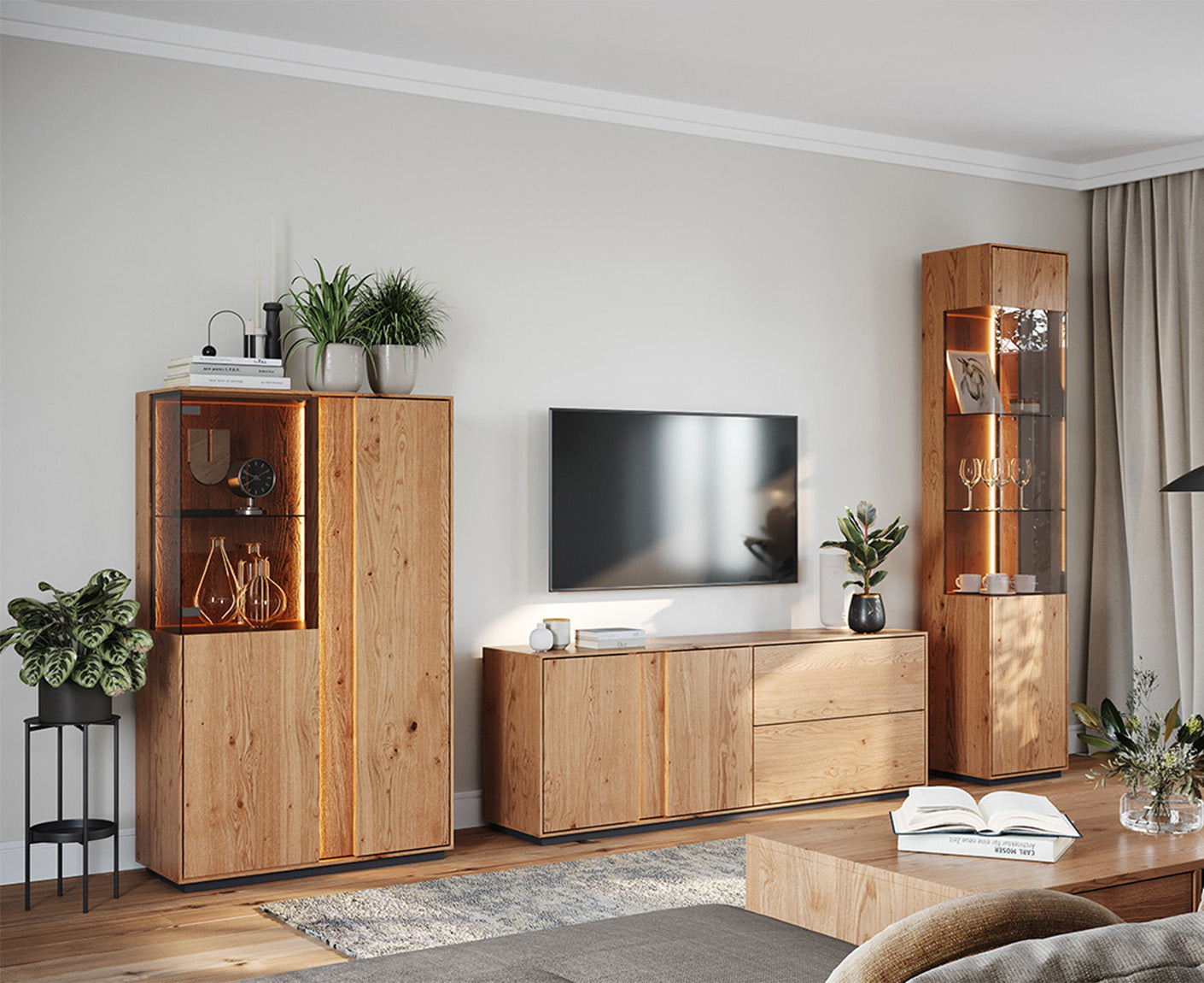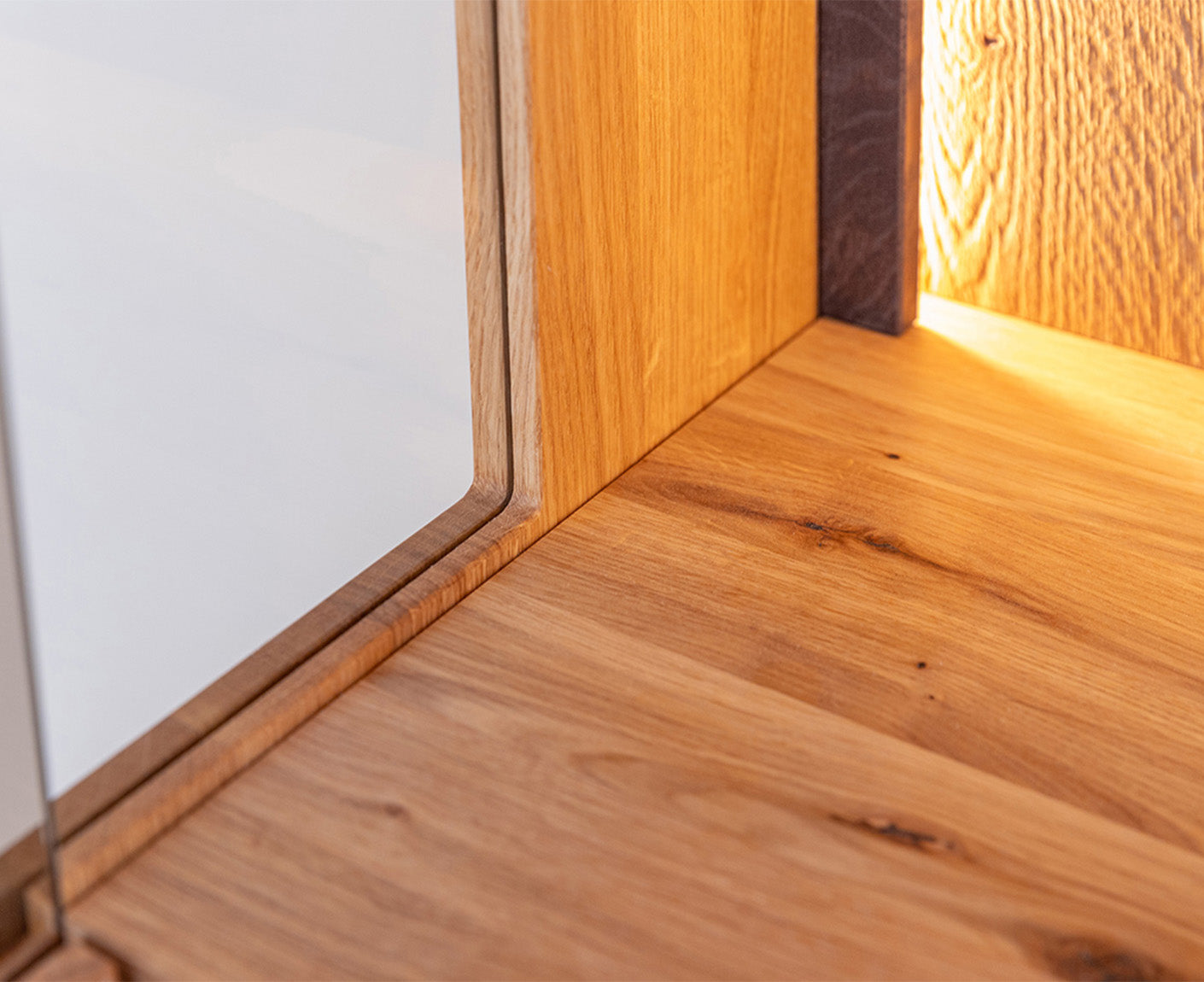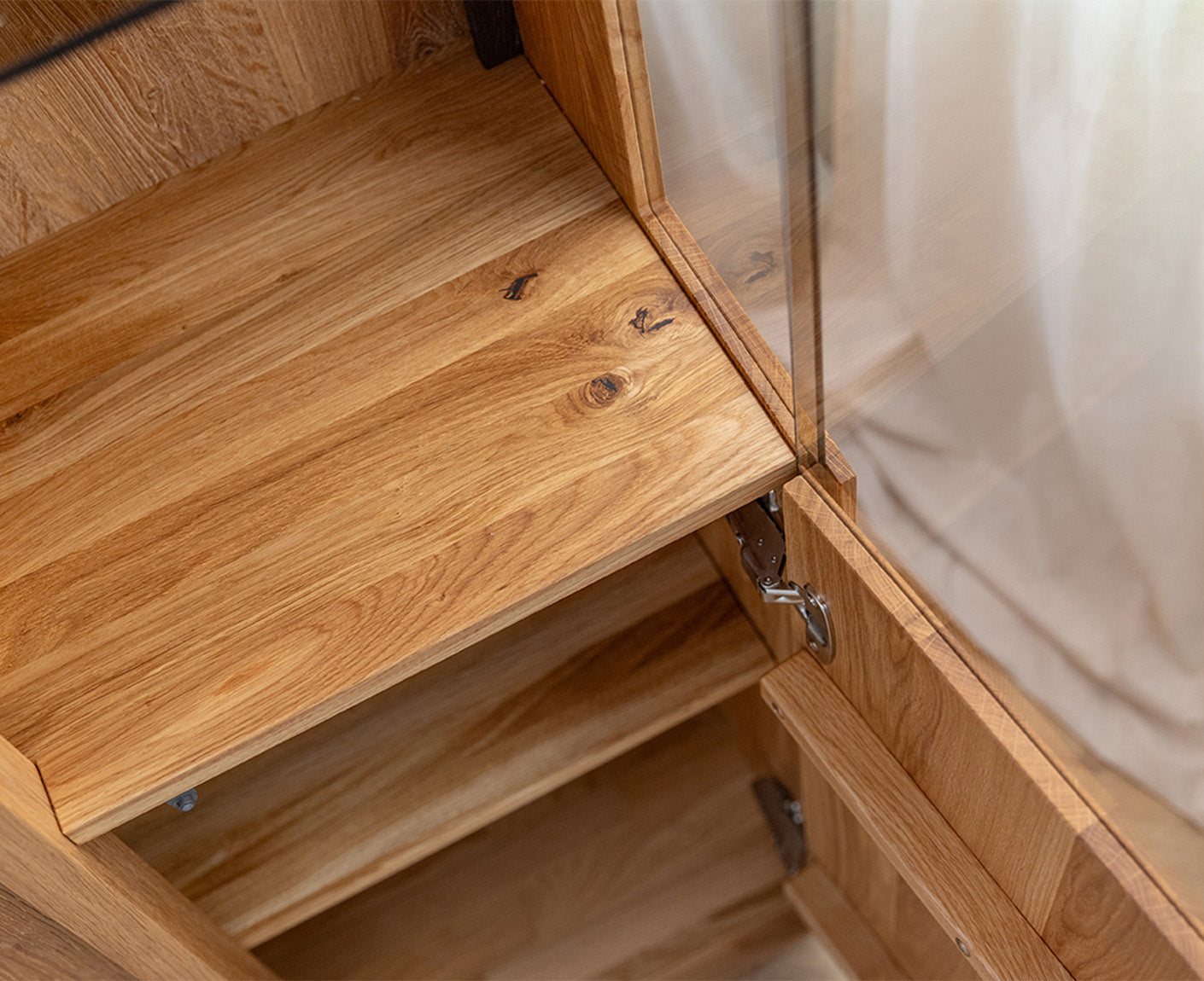Collodi Vitrine Massivholz Wildeiche / Tabak geölt, fertig montiert