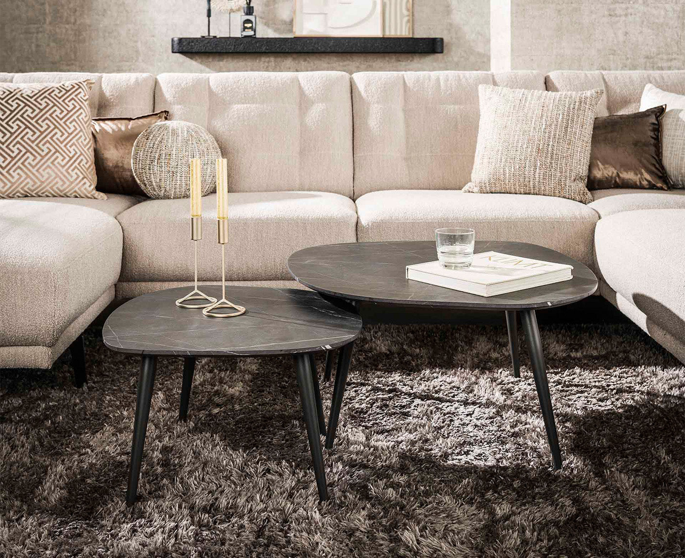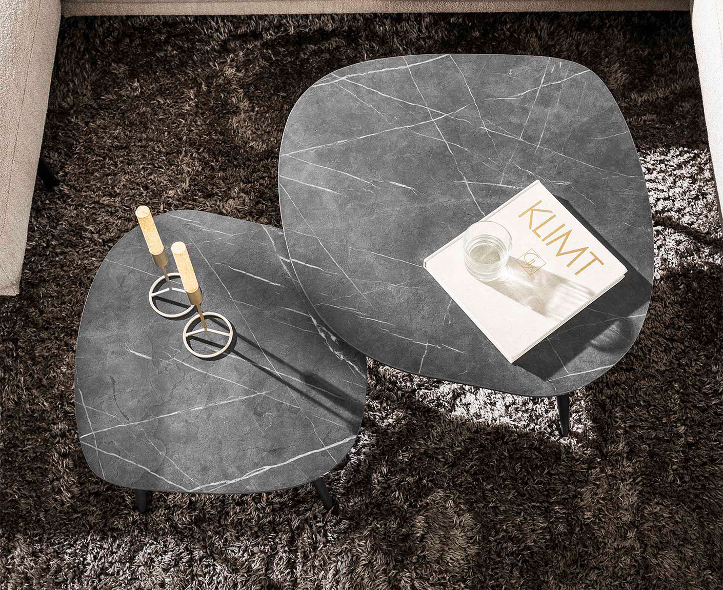 Couchtisch 2er Set Rock Organic 3D Schwarz-Braun
