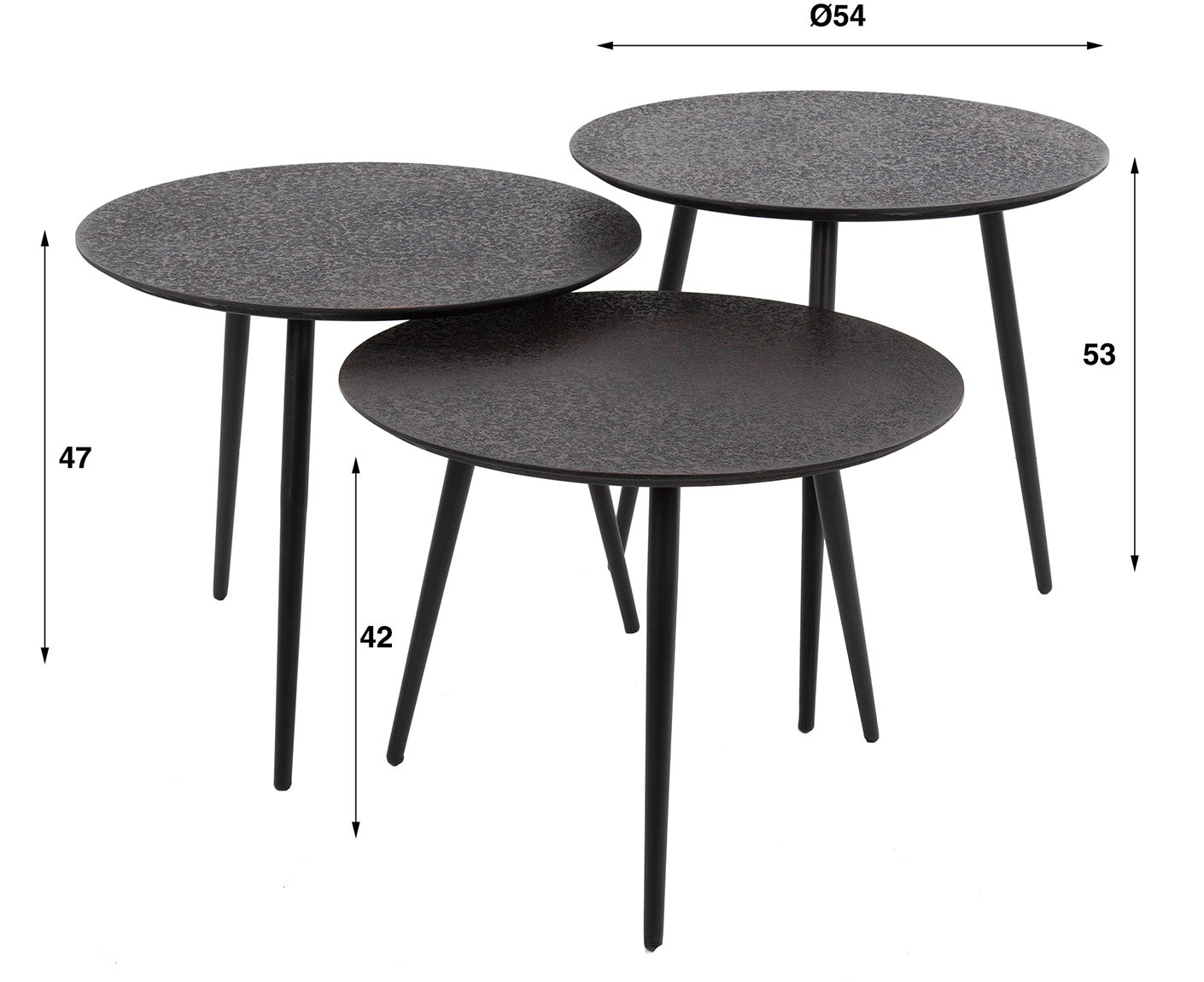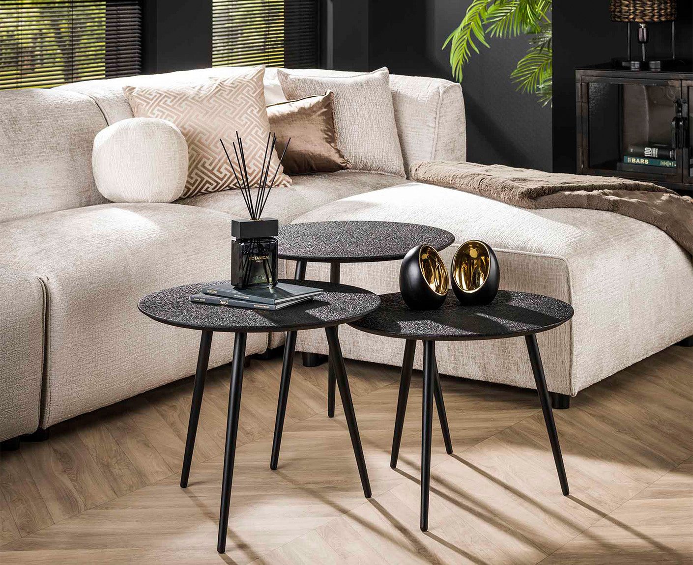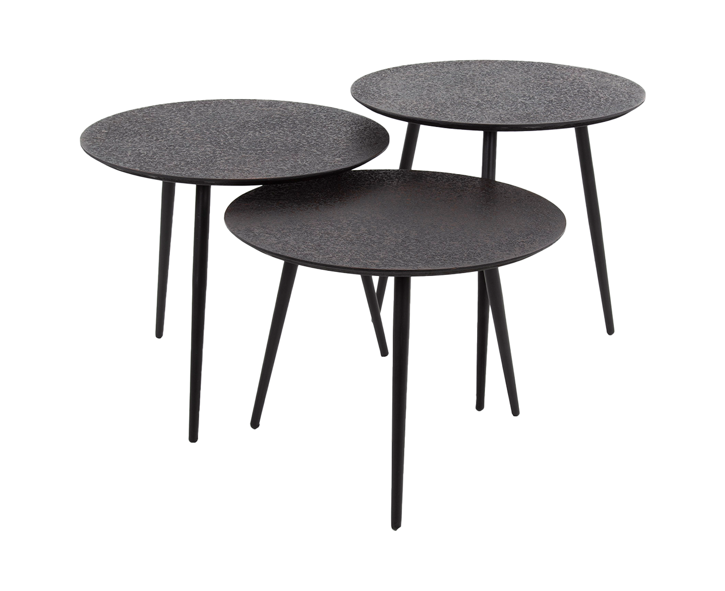 Couchtisch 3er Set, rund, Metallic Schwarz