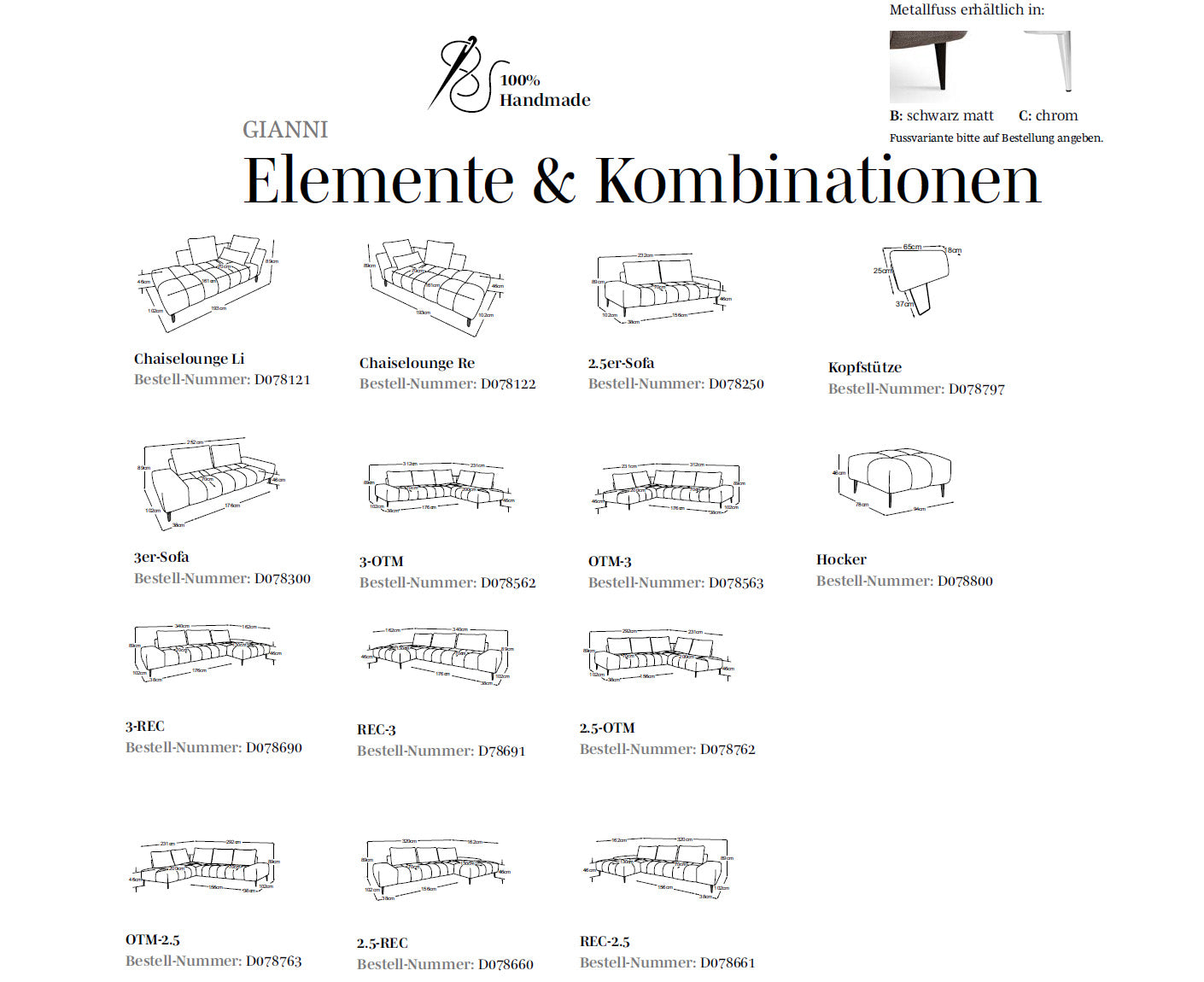 - Metallfüße | schwarz matt oder Chrom | Höhe: 17 cm