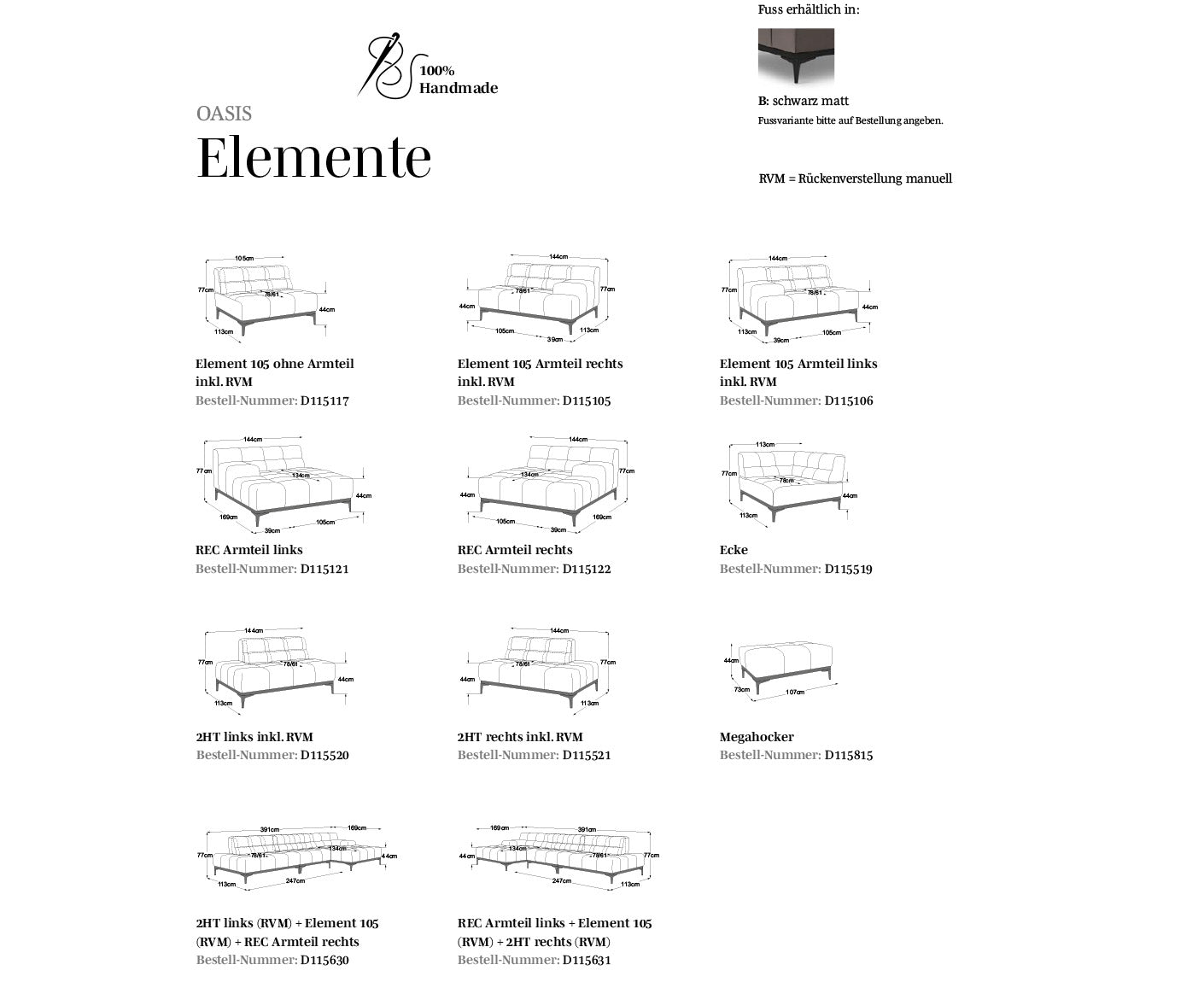 - Metallfüße schwarz matt | Höhe: 15 cm
