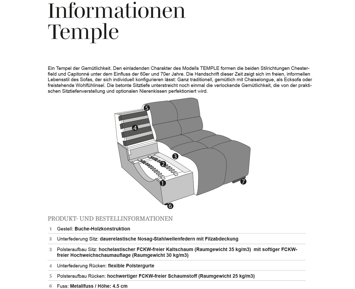 designwerk Temple Ecksofa | 257 x 257 cm| mit Rückenverstellung | Flachgewebe