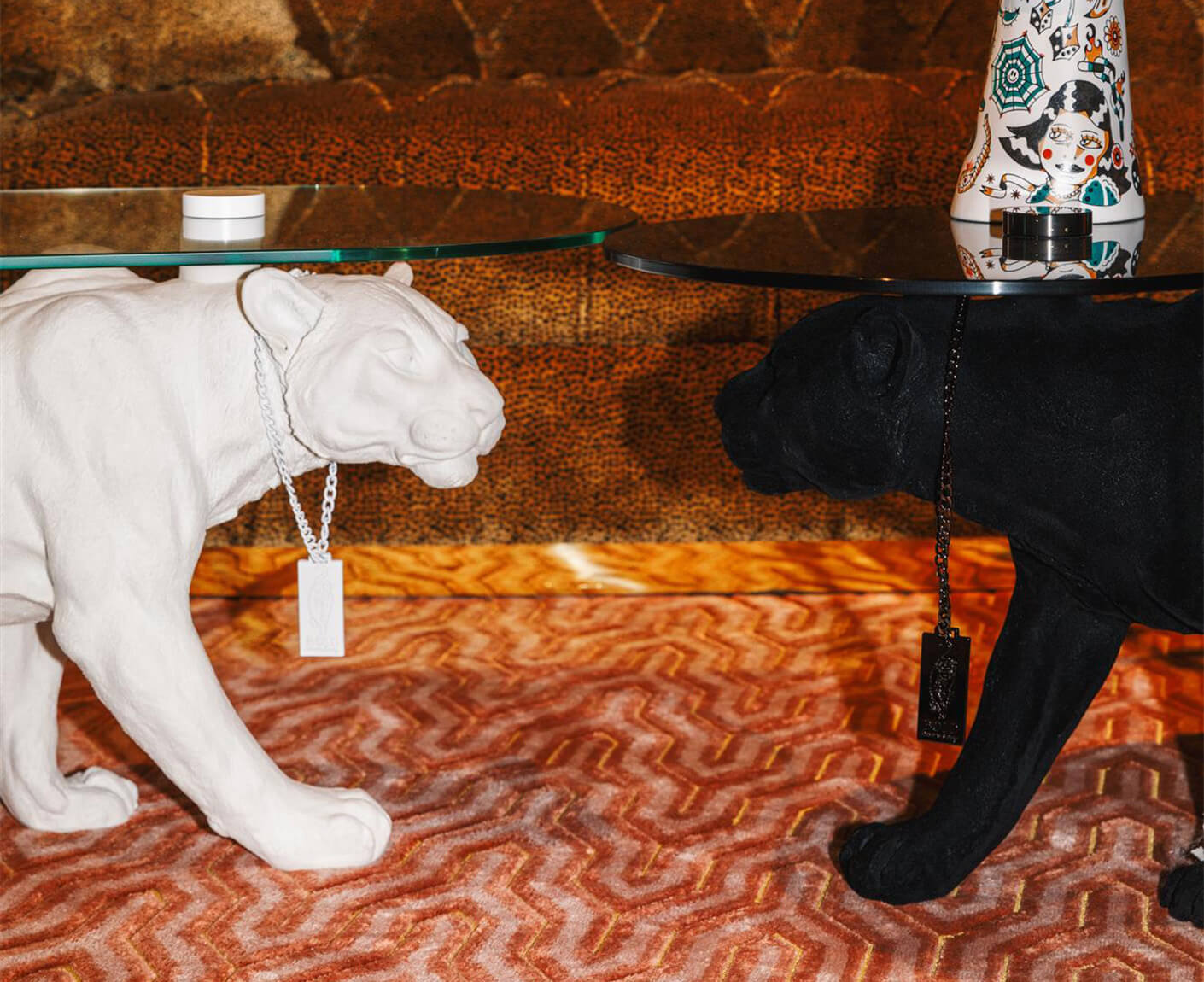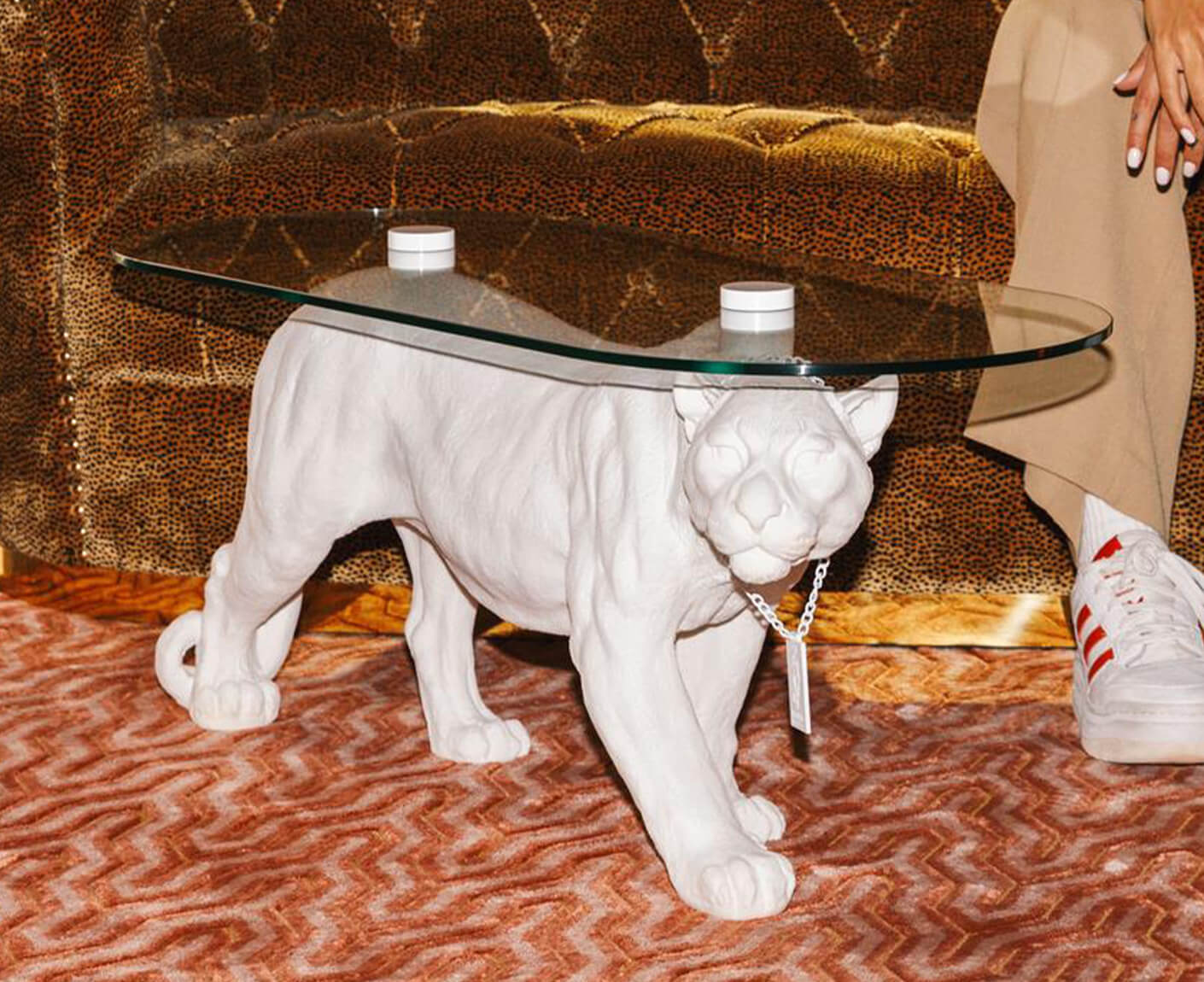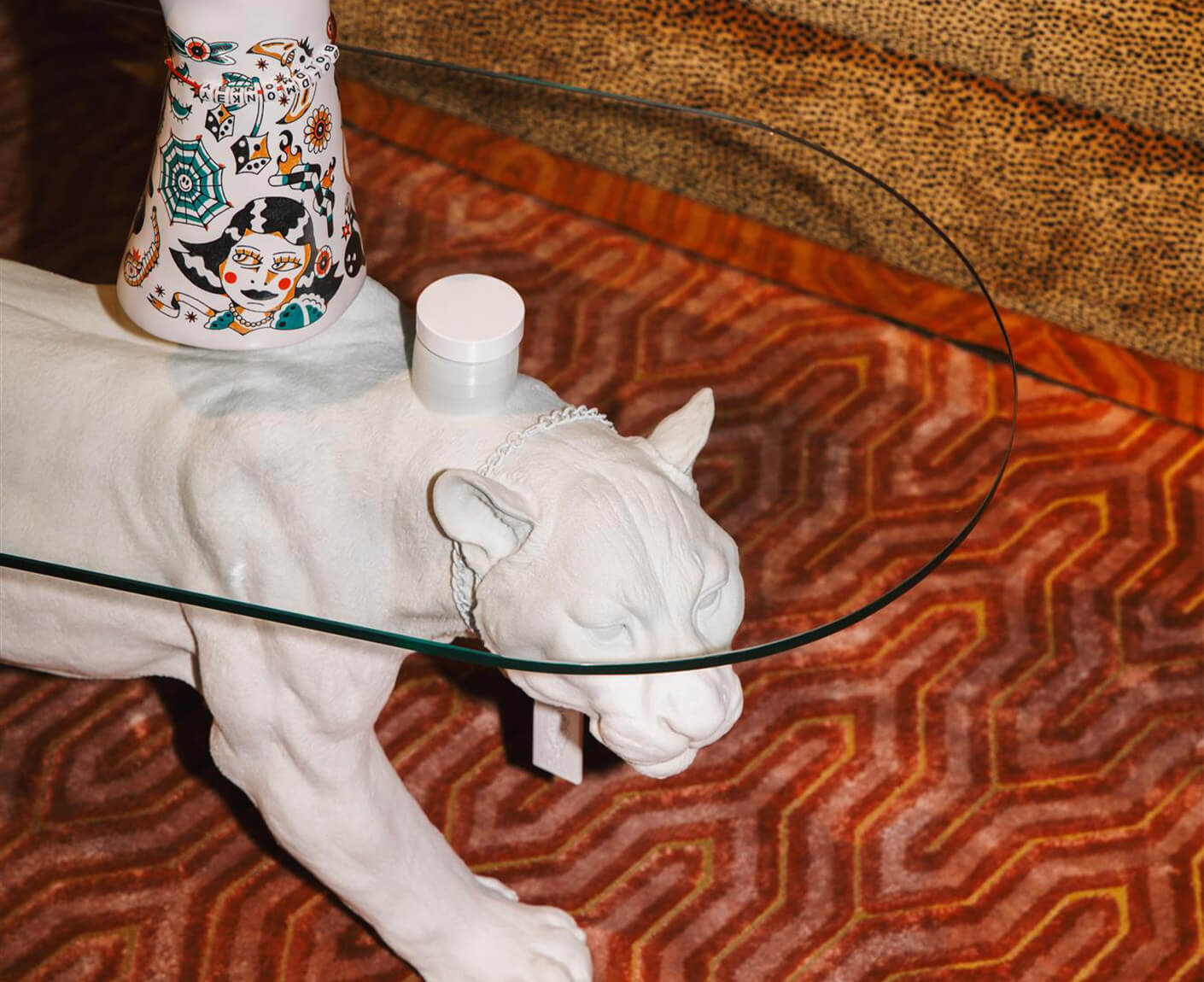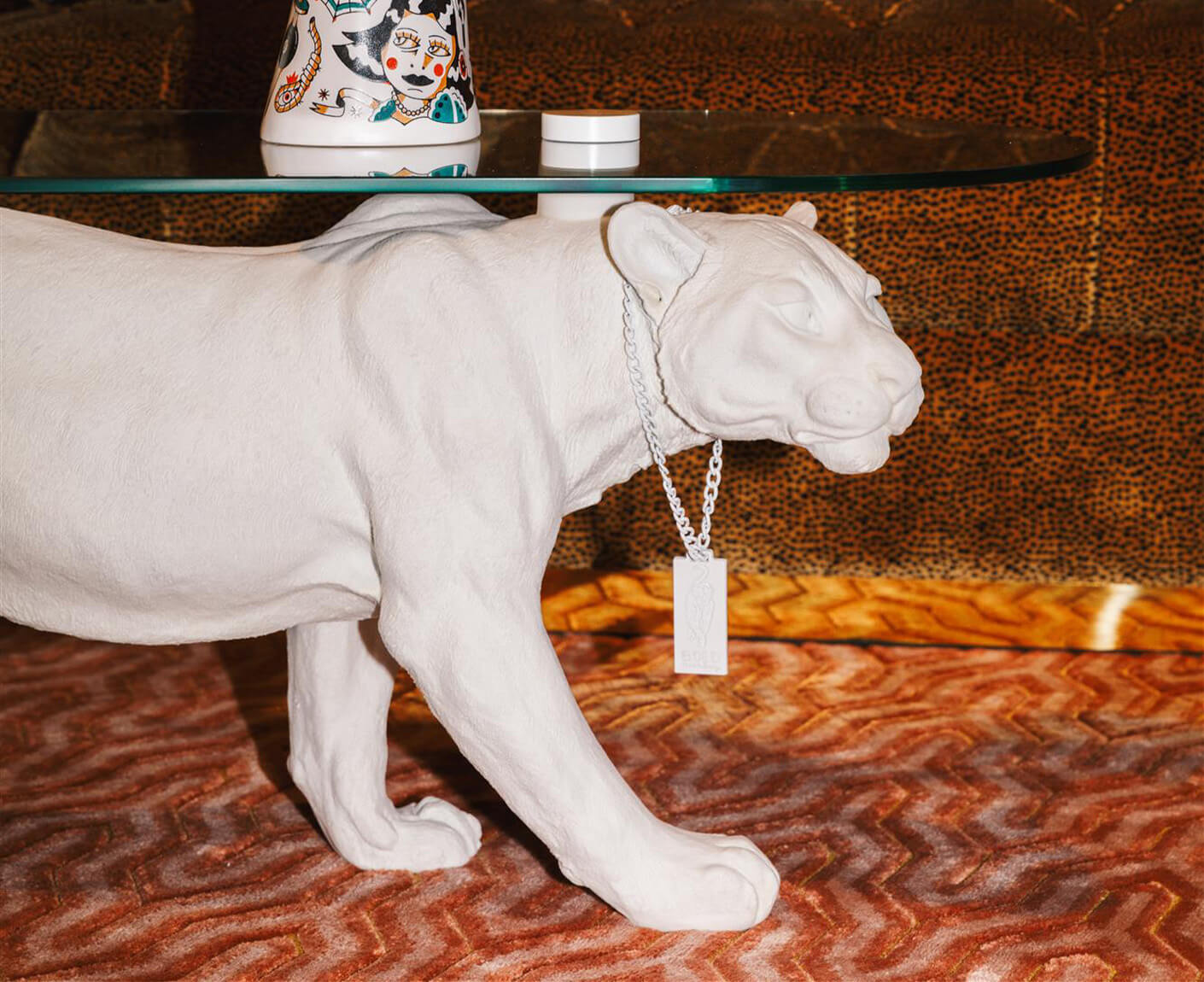 Weißer samtbeschichteter Panther aus Harz - Produktdetails: