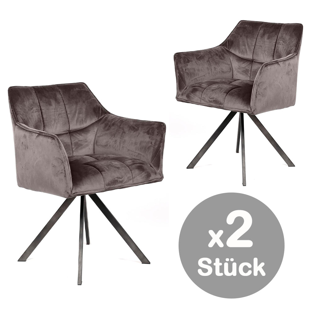 Esszimmerstuhl Armlehnenstuhl drehbar 2er-Set Samt Anthrazit / Schwarz