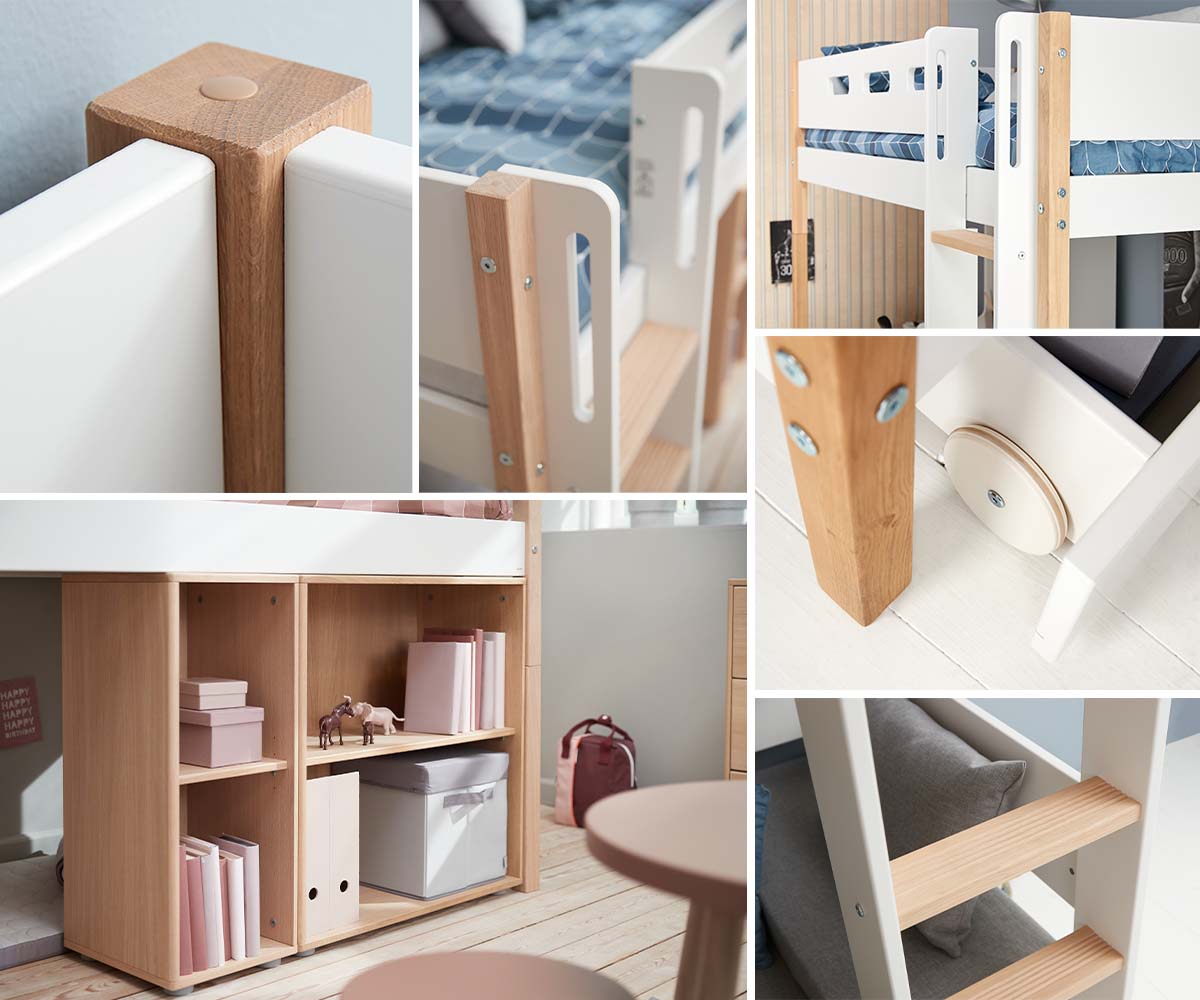 Flexa Nor Ausziehbett mit Schubladen für 90x200 cm Einzelbett Weiß