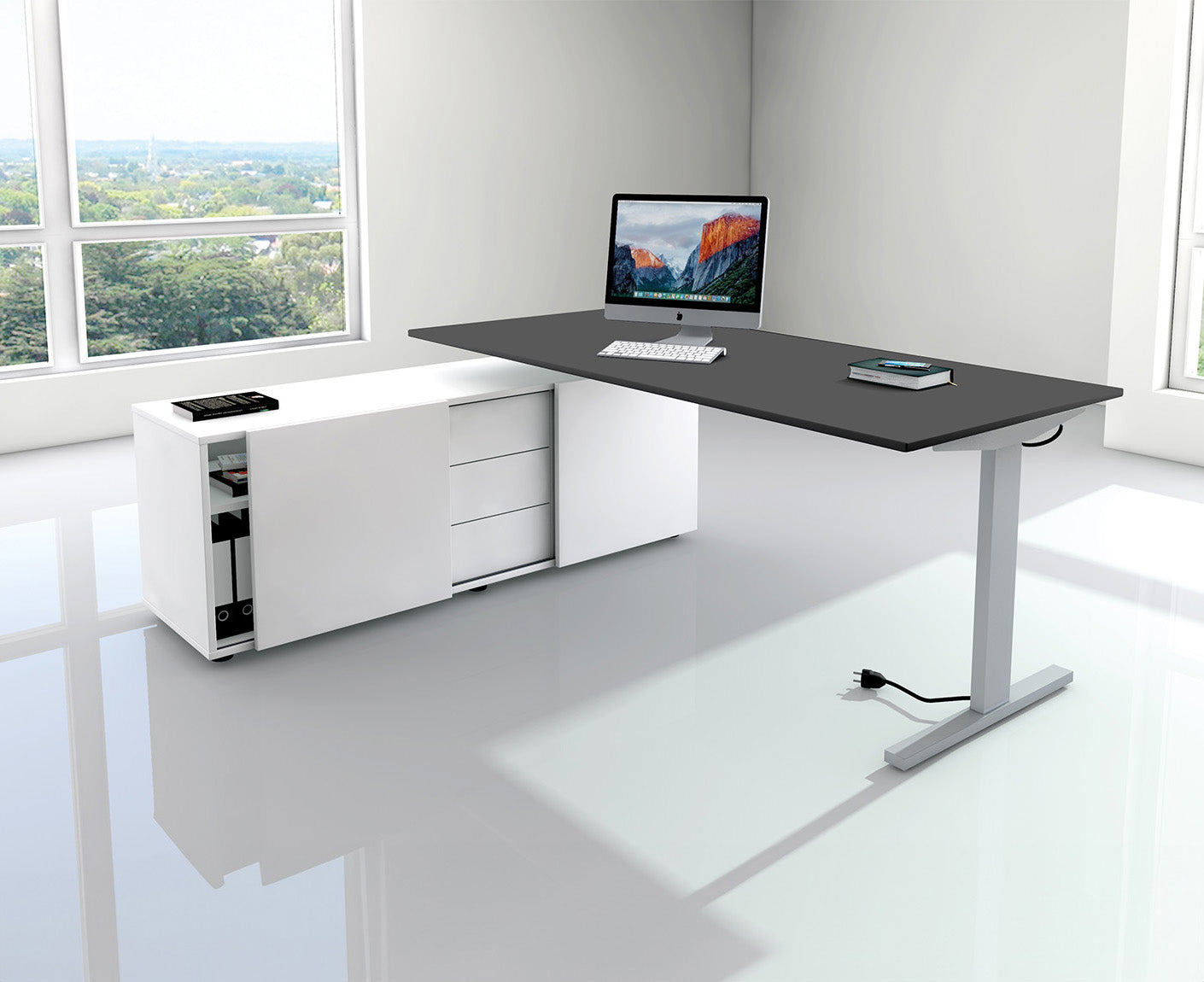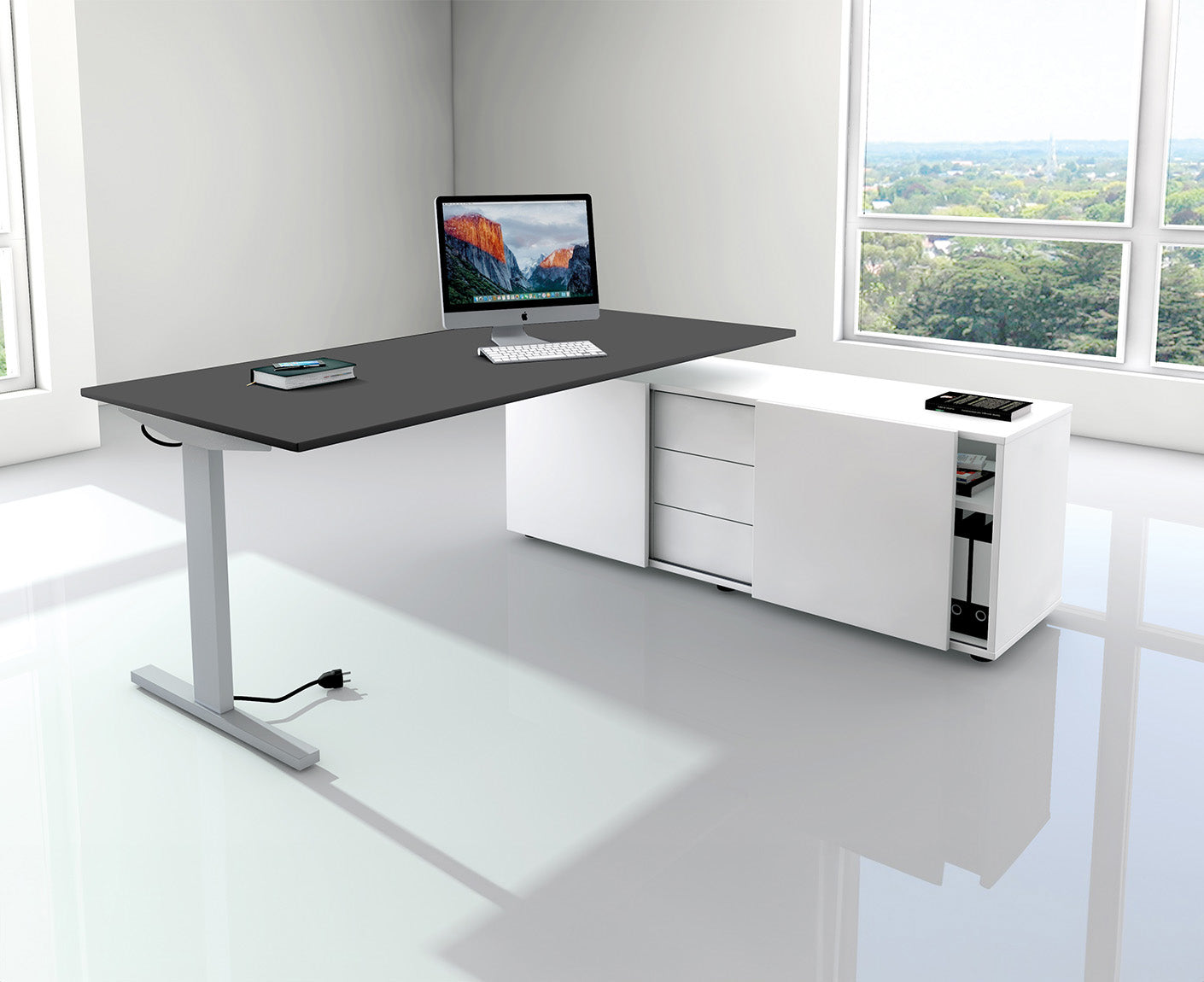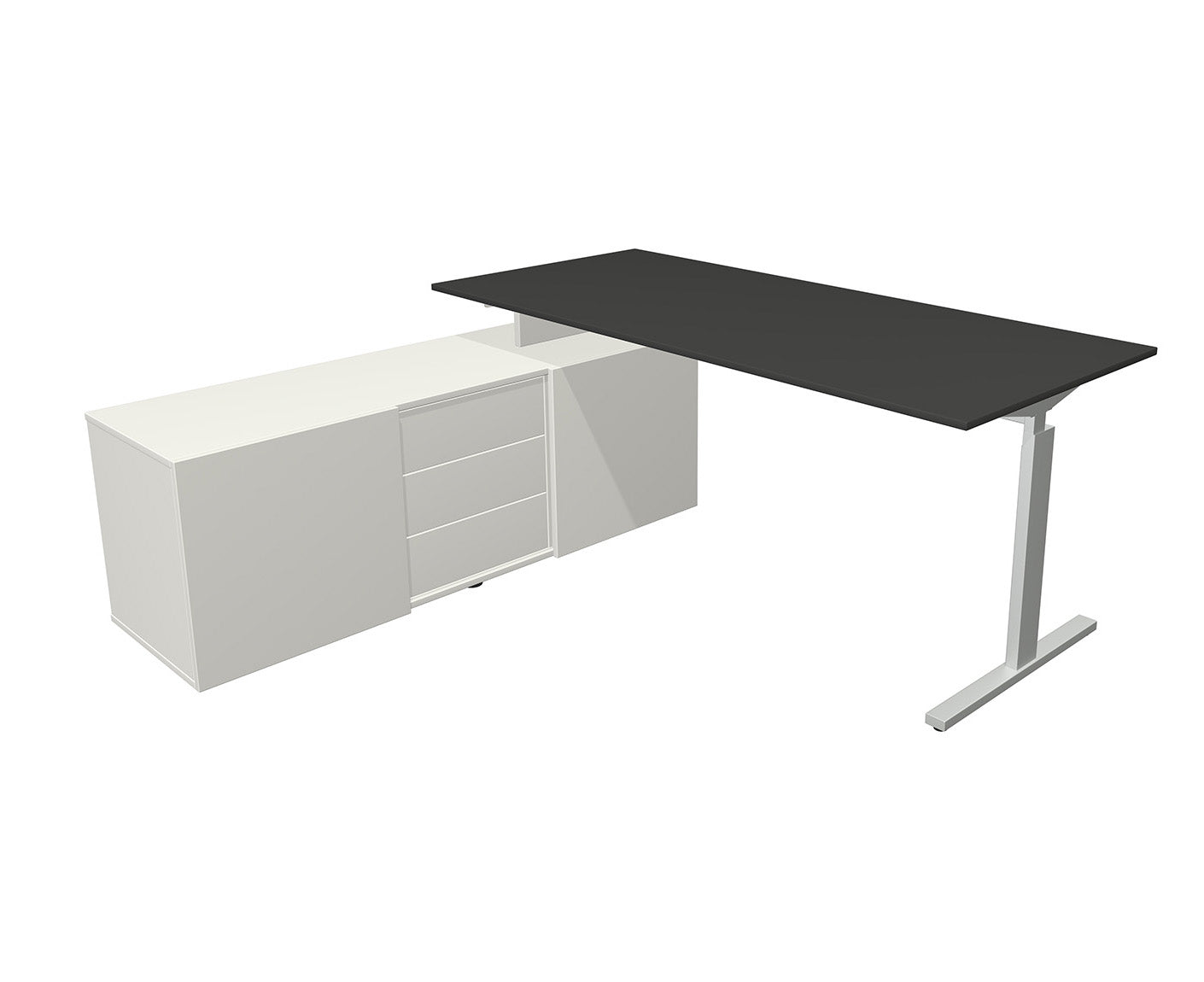 - Tischplatte aus E1 Gütespan, melaminharzbeschichtet, mit ABS Kante 2 mm stark
