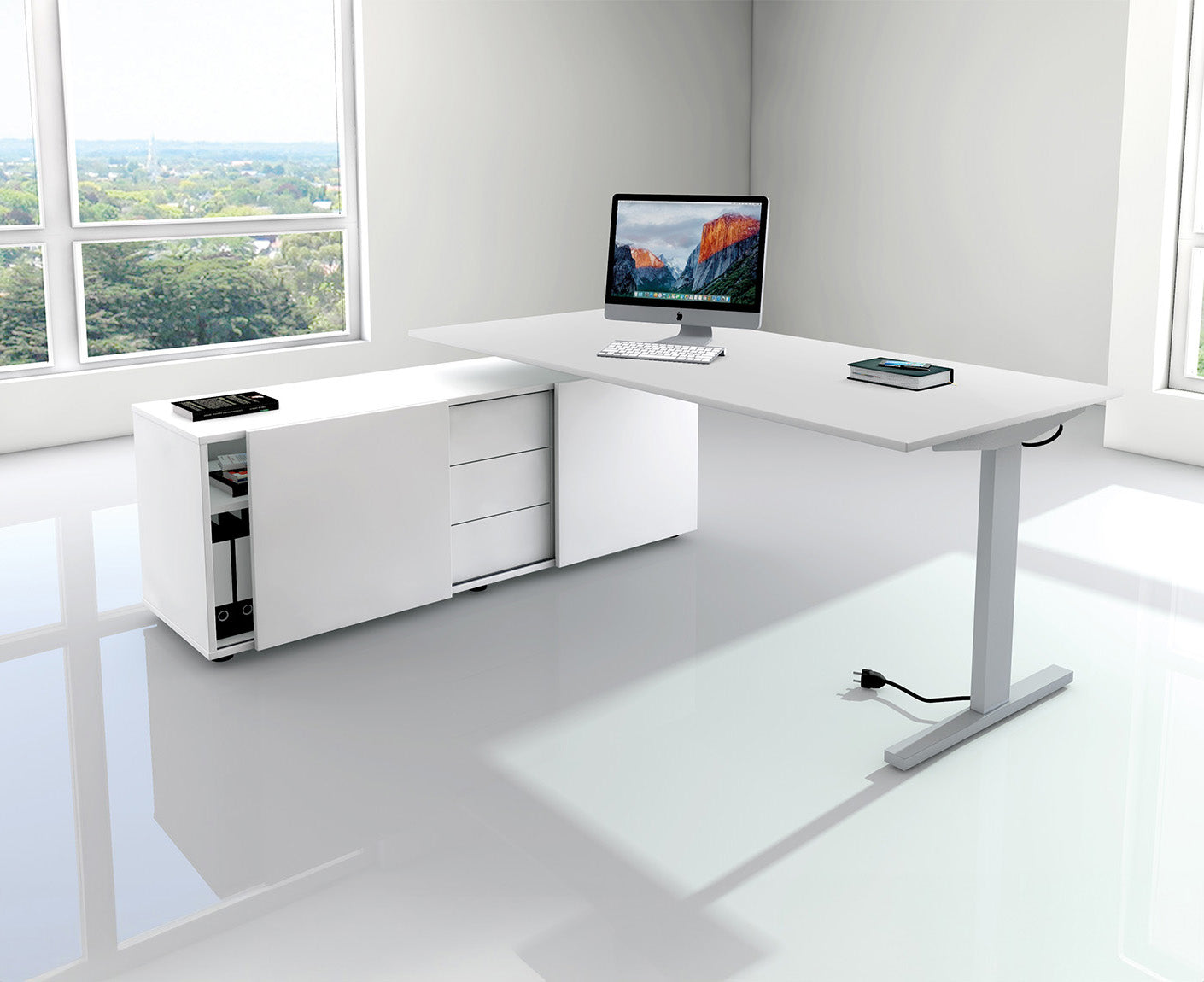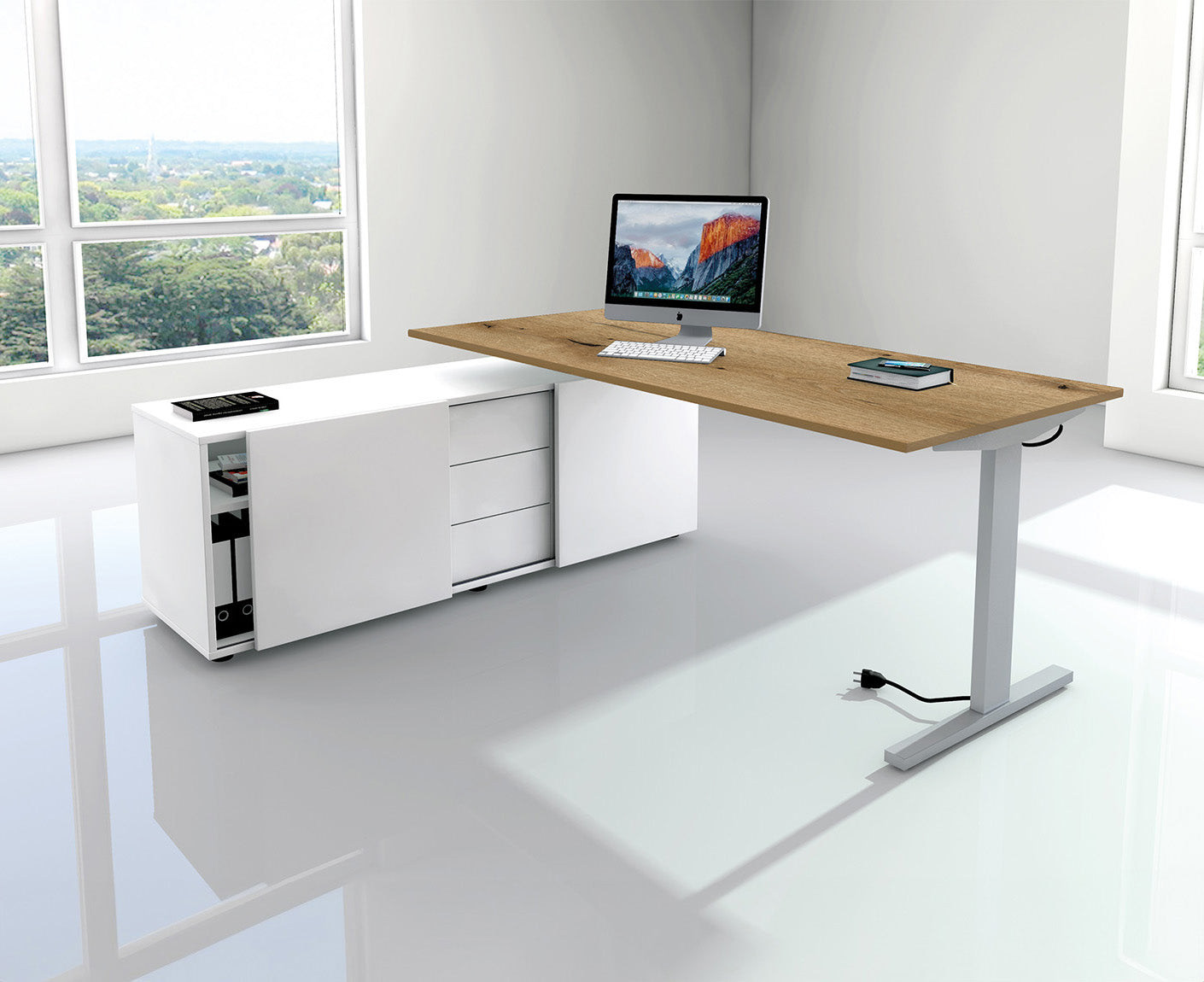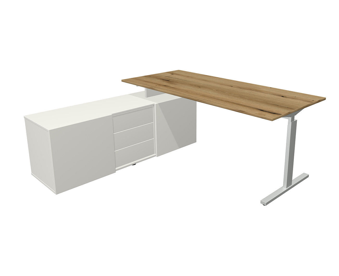 - Tischplatte aus E1 Gütespan, melaminharzbeschichtet, mit ABS Kante 2 mm stark
