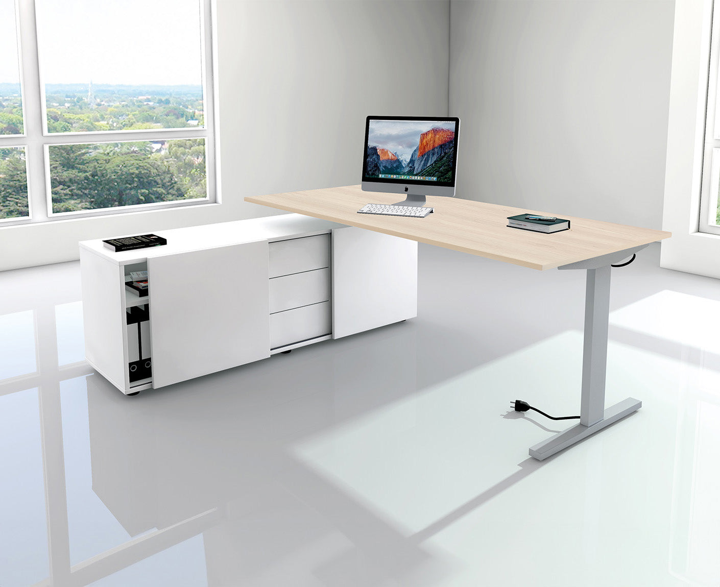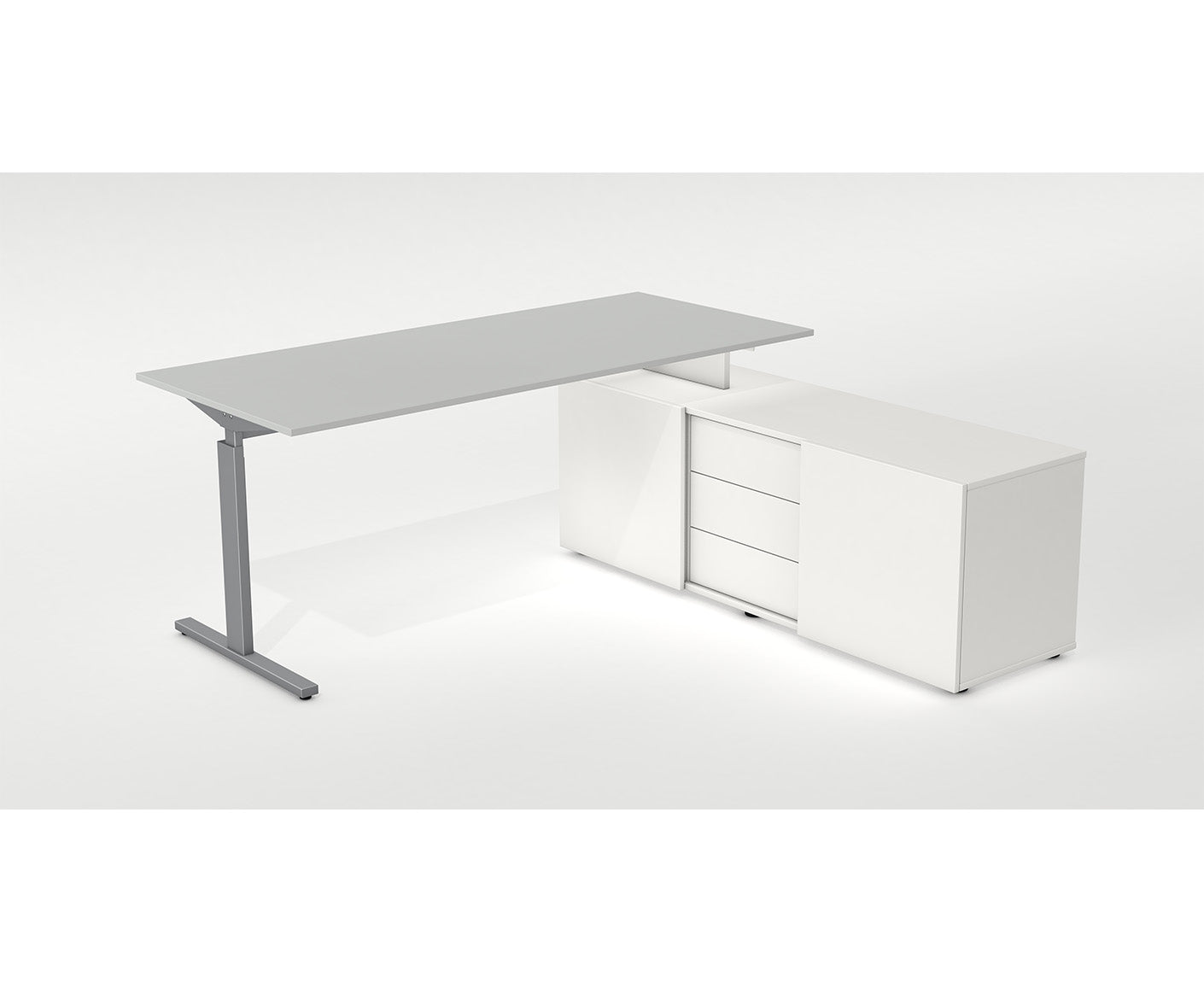 - stabiles T-Fuß-Gestell aus alusilber pulverbeschichtetem Rohr, mit Stellfüßen