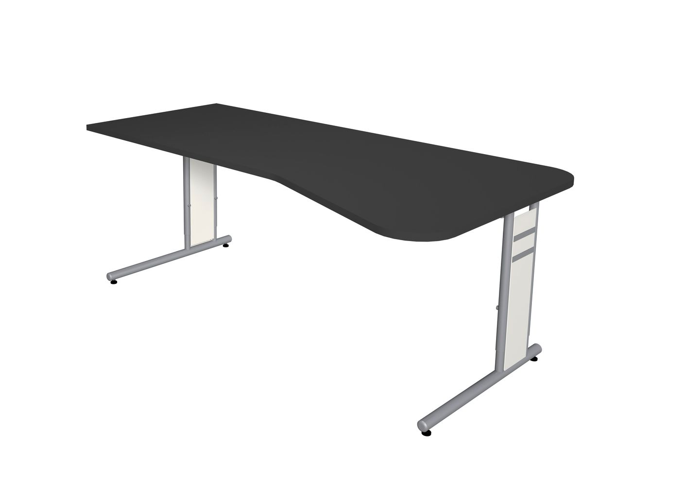 Das neue Büromöbelprogramm mit Applikationen in Alusilber und trendigen Dekoren. Sie können zwischen 3 Tischplattendekoren ( Weiß, Grafit oder Wenge) und 4 Gestellformen (C-Fuß-Gestell Typ B, C und D oder 1 Wangengestell Typ A) wählen. Optional können die Schreibtische mit einer Knieraumblende und einer Sichttrennwand werden. Zudem bietet das C-Fuß-Gestell Typ B und C und das Wangengestell Typ A die Möglichkeit die Tischplatte in der Höhe einzustellen.Stauraum für die Verkabelung bietet der serienmäßig vorhandene Kabelkanal. Zur Vergrößerung der Arbeitsfläche oder für kleinere Besprechungen ergänzen Sie die Schreibtische durch entsprechende Anbautische. Als Ergänzug stehen weiße Rollcontainer mit großem Stauraum, da 80 cm tief, zur Verfügung. Wählen Sie hier zwischen 3 Schubladen oder 1 Schublade und Hängeregistratur. Vielfältige Kombinationsmöglichkeiten bietet der Regalbereich. Der Korpus, generell in weiß mit feinem alusilber-Akzent an der Vorderkante, kann durch Türen in 2 OH oder 5 OH , aber auch durch Schubladen für Hängeregistratur vervollständigt werden.