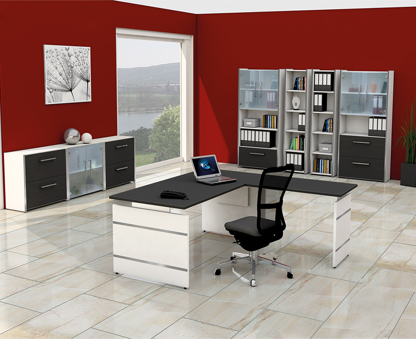 180 x 180 cm (Schreibtisch 180x80cm; Anbautisch 100x60cm)