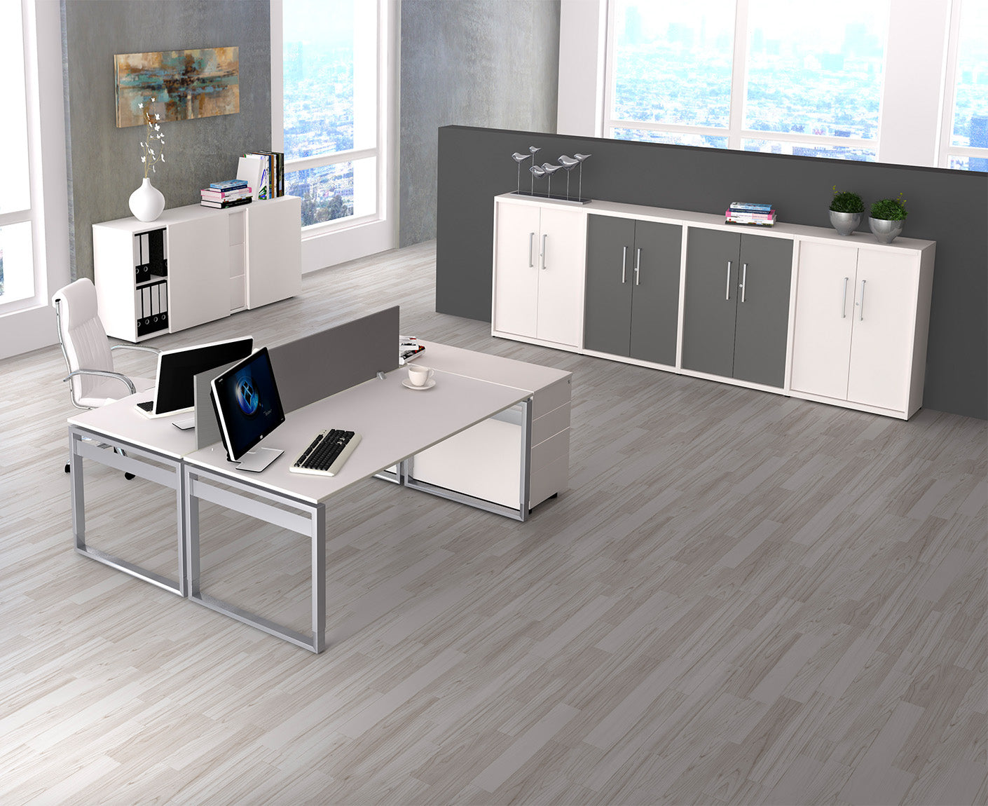 - Tischplatte aus E1 Gütespan, melaminharzbeschichtet, mit ABS Kante 2 mm stark 19 mm