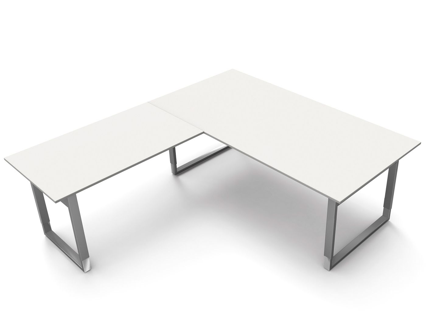 Die Schreibtische können optional durch einen Anbautisch zu einer Eck-Kombination erweitert werden. Der Anbautisch kann rechts oder links montiert werden und eignet sich ideal für Besprechungen oder Kundentermine.